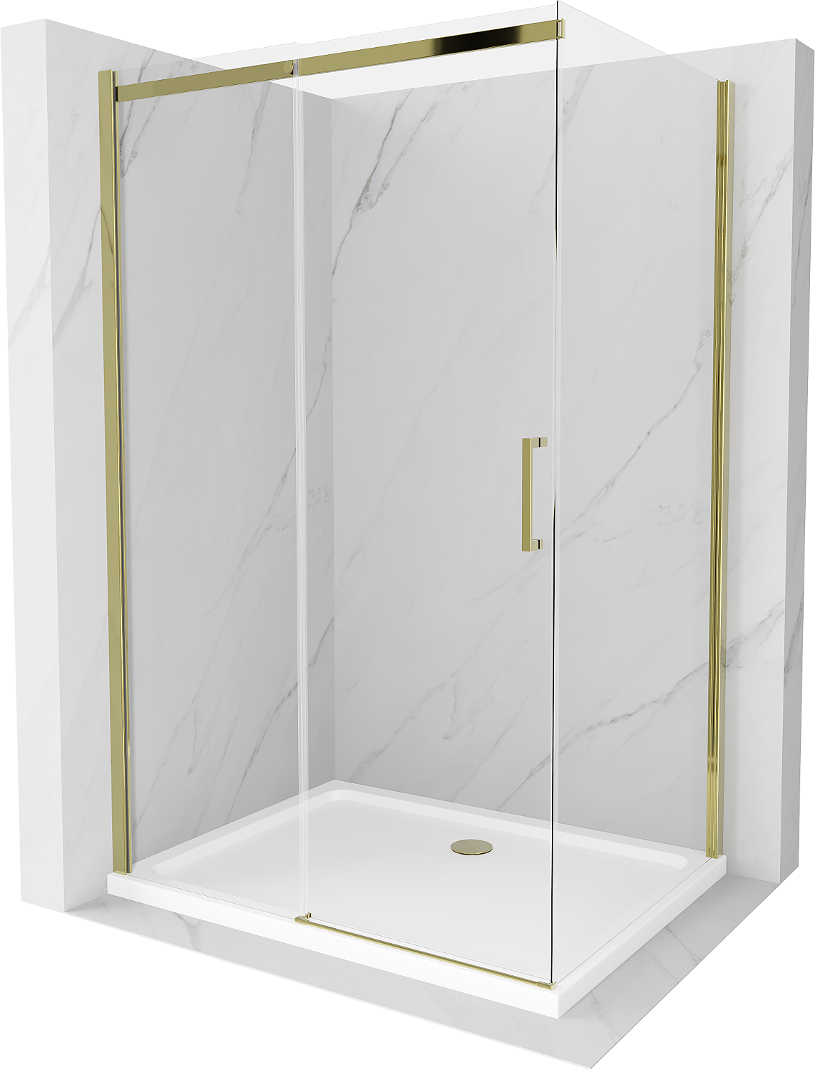 Mexen Omega liukuovellinen suihkukaappi 140 x 90 cm, läpinäkyvä, kullanvärinen + Flat-suihkualusta - 825-140-090-50-00-4010
