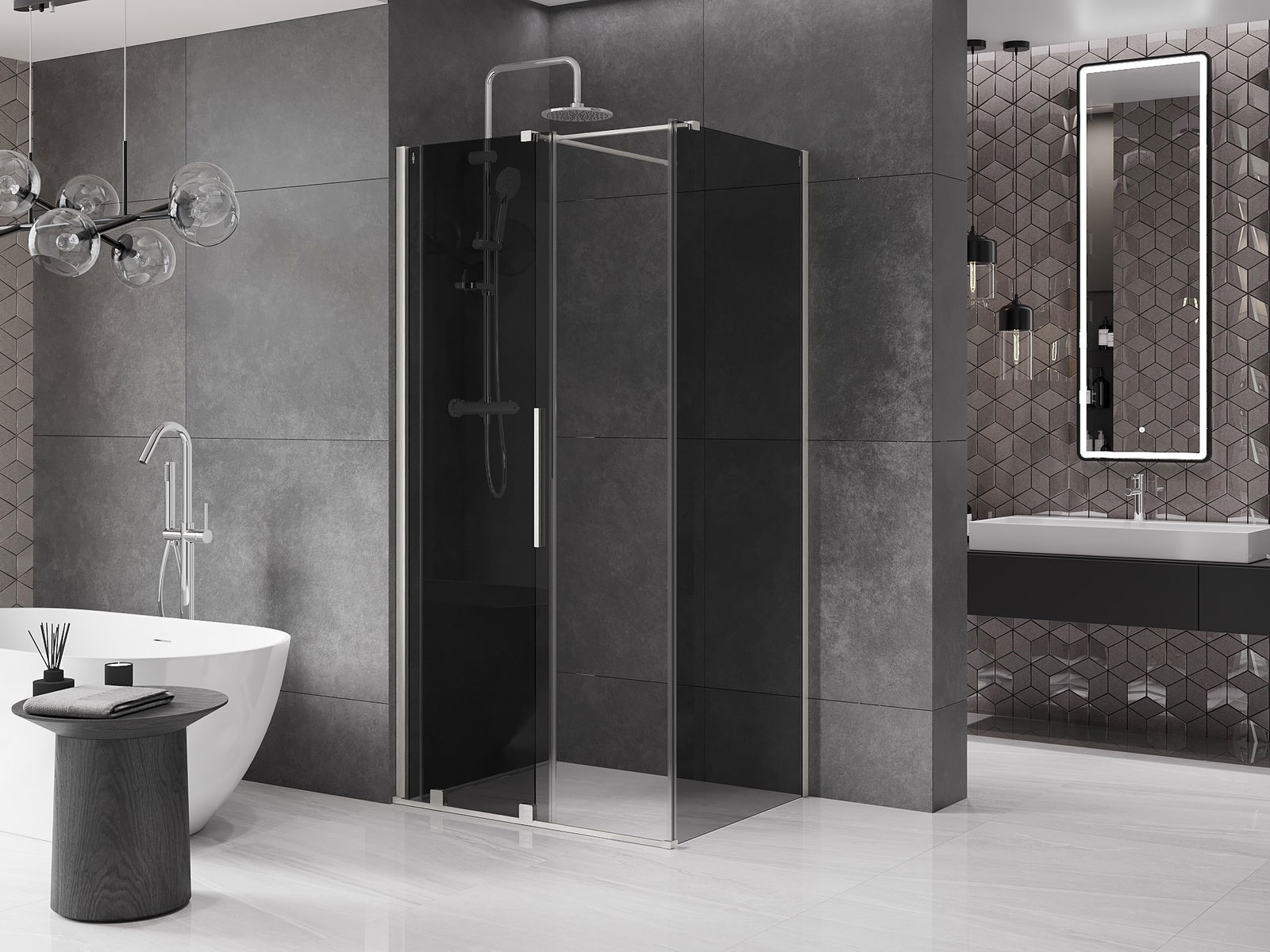 Kätevä ja mukava kahva on valmistettu ruostumattomasta teräksestä. Muodikas muoto yhdistettynä profiilien väriin sopivaan viimeistelyyn antaa kokonaisuudelle modernin ja tyylikkään ulkonäön, korostaen jokaisen kylpyhuoneen estetiikkaa.