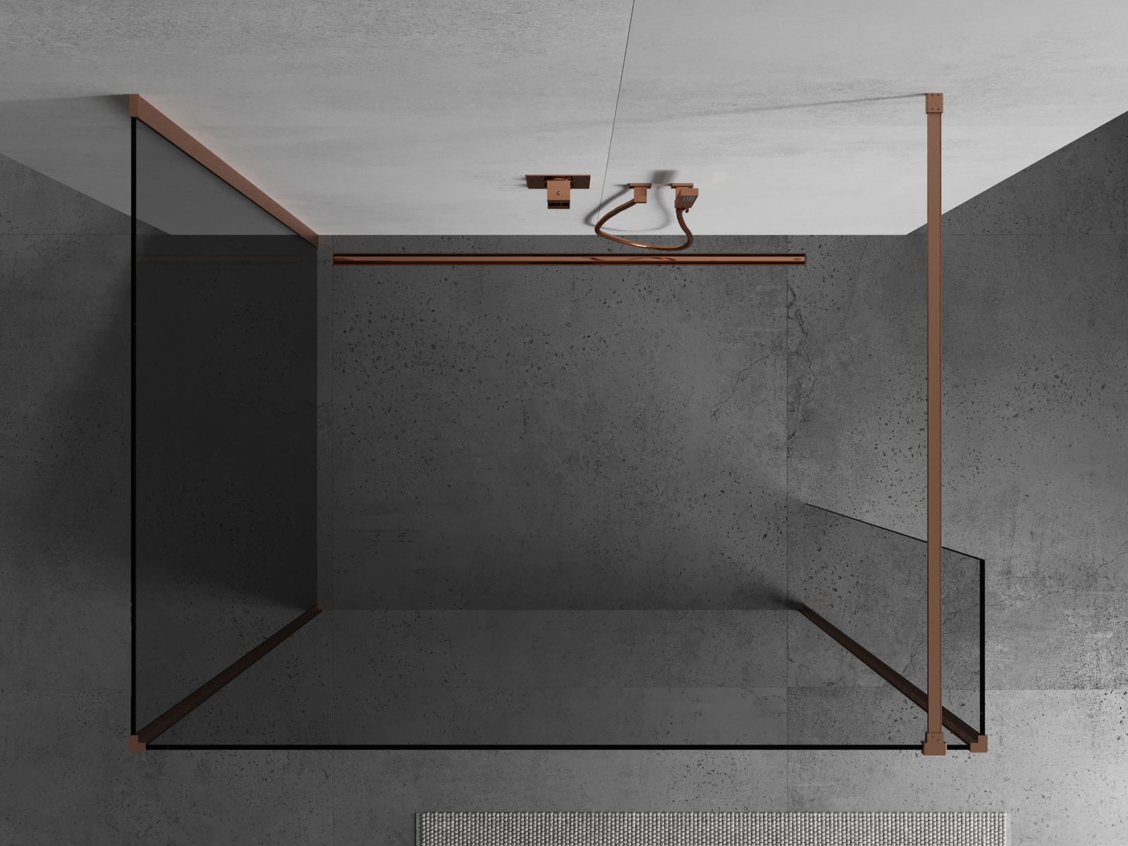 Mexen Kioto suihkuseinä Walk-in 130 x 90 x 30 cm, läpinäkyvä, harjattu kupari - 800-130-090-221-65-00-030