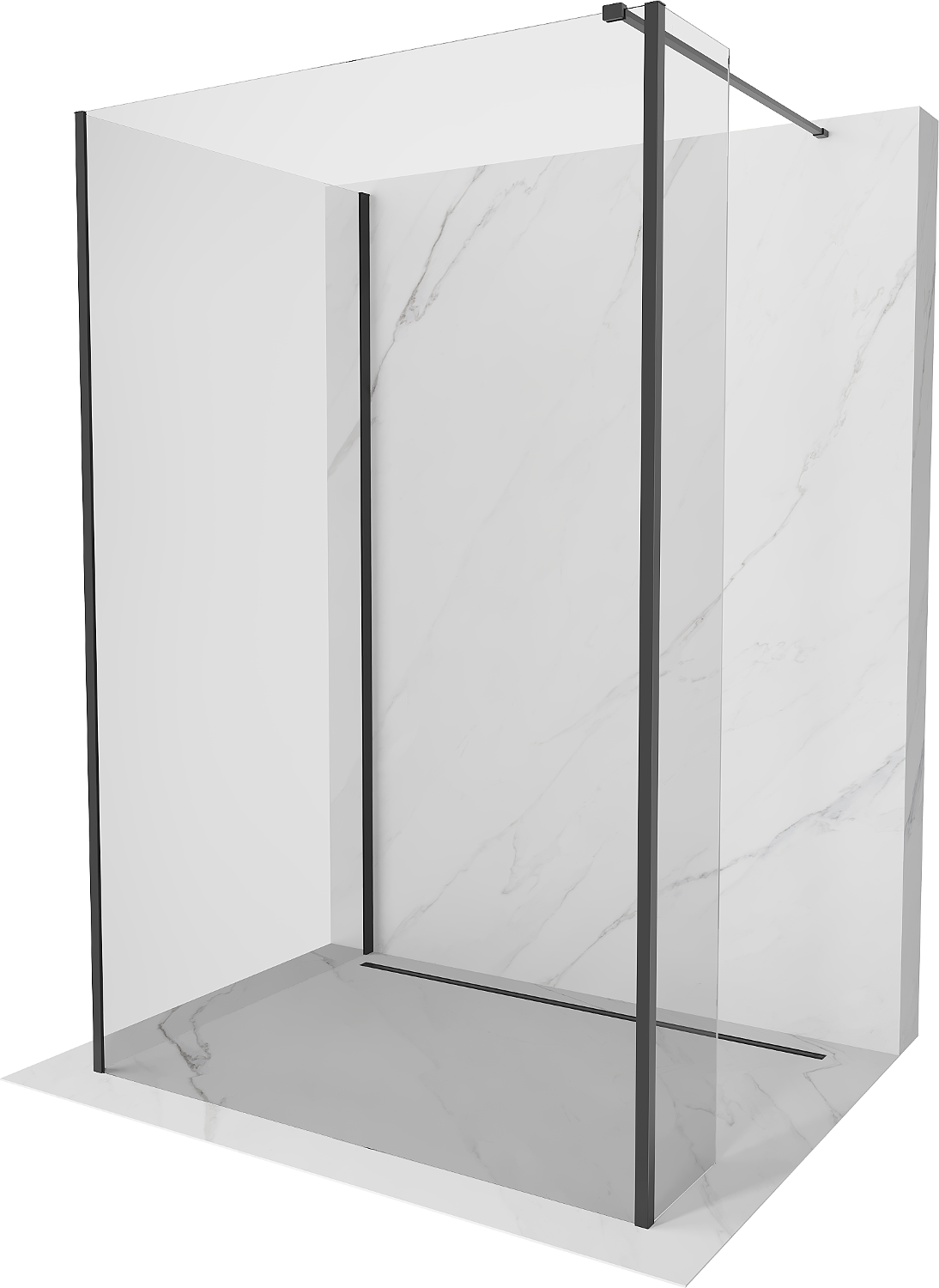 Mexen Kioto Suihkuseinä Walk-in 125 x 80 x 30 cm, läpinäkyvä, musta - 800-125-080-221-70-00-030