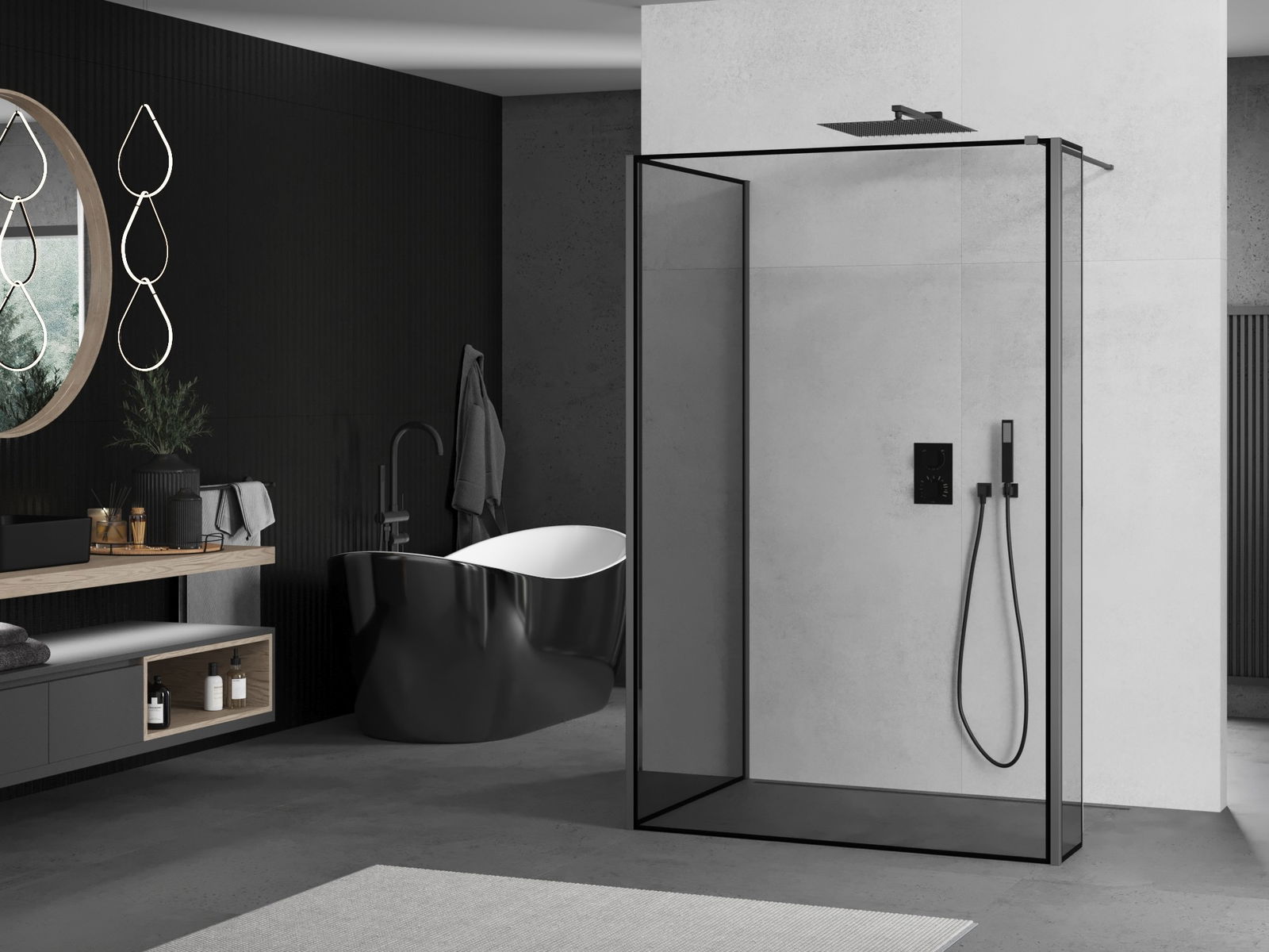 Mexen Kioto suihkuseinä Walk-in 100 x 70 x 30 cm, musta kehys, gun metal - 800-100-070-221-95-70-030