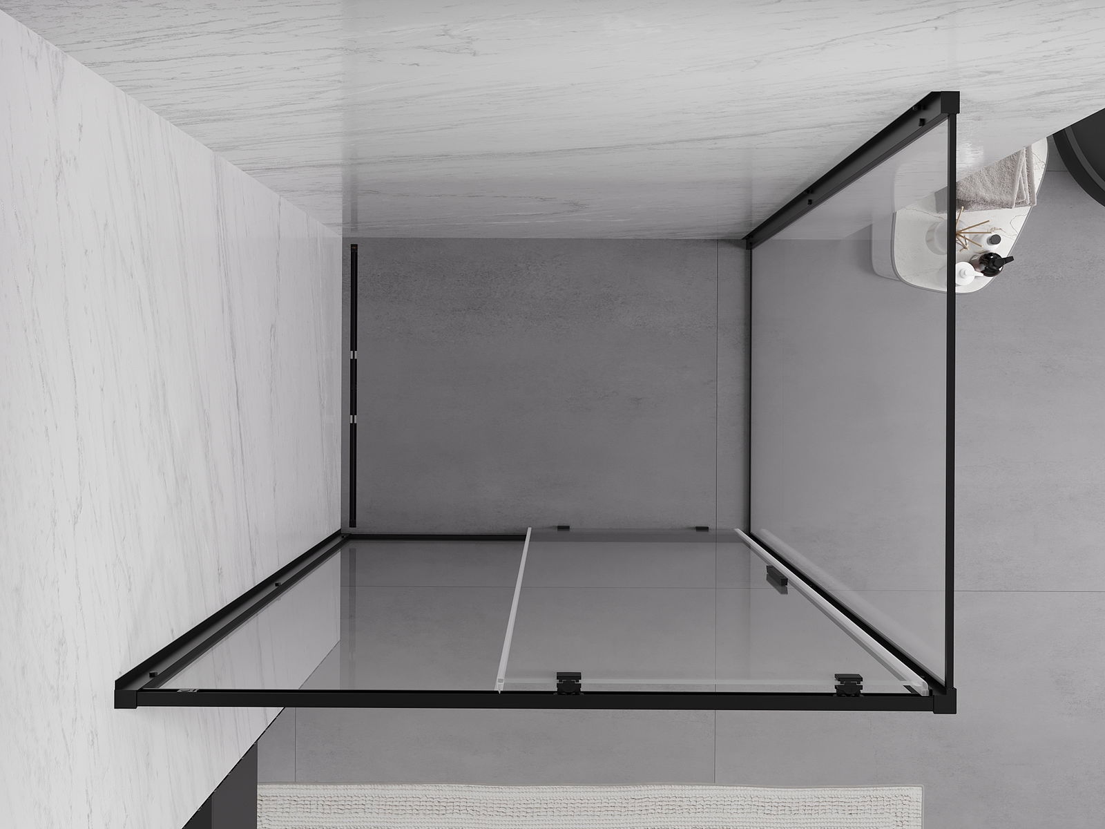 Mexen Exo liukuovi suihkukaappi 90 x 85 cm, läpinäkyvä, musta - 8151-090-085-70-00