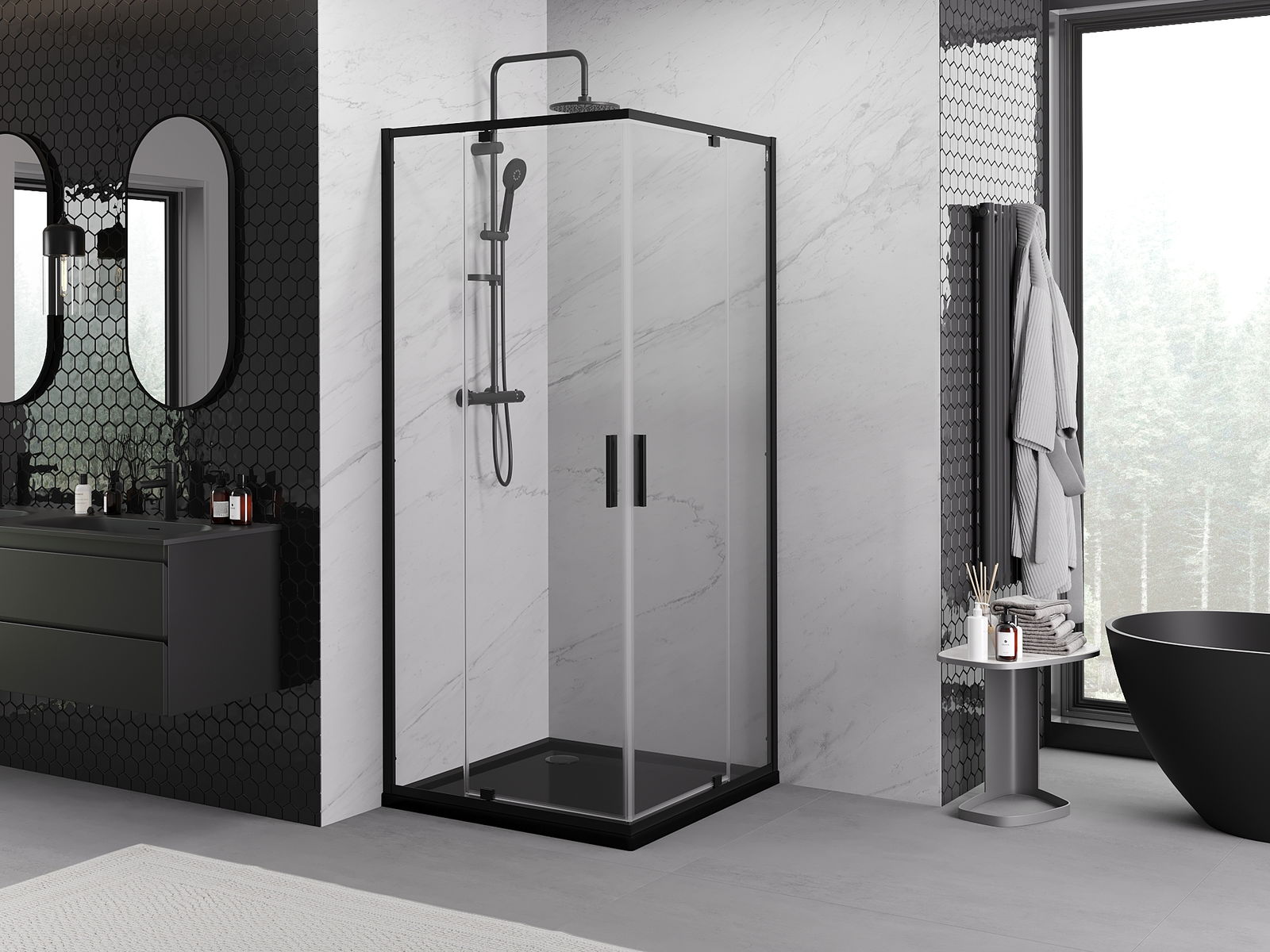 Mexen Rio neliönmuotoinen suihkukaappi 90 x 90 cm, läpinäkyvä, musta - 860-090-090-70-00