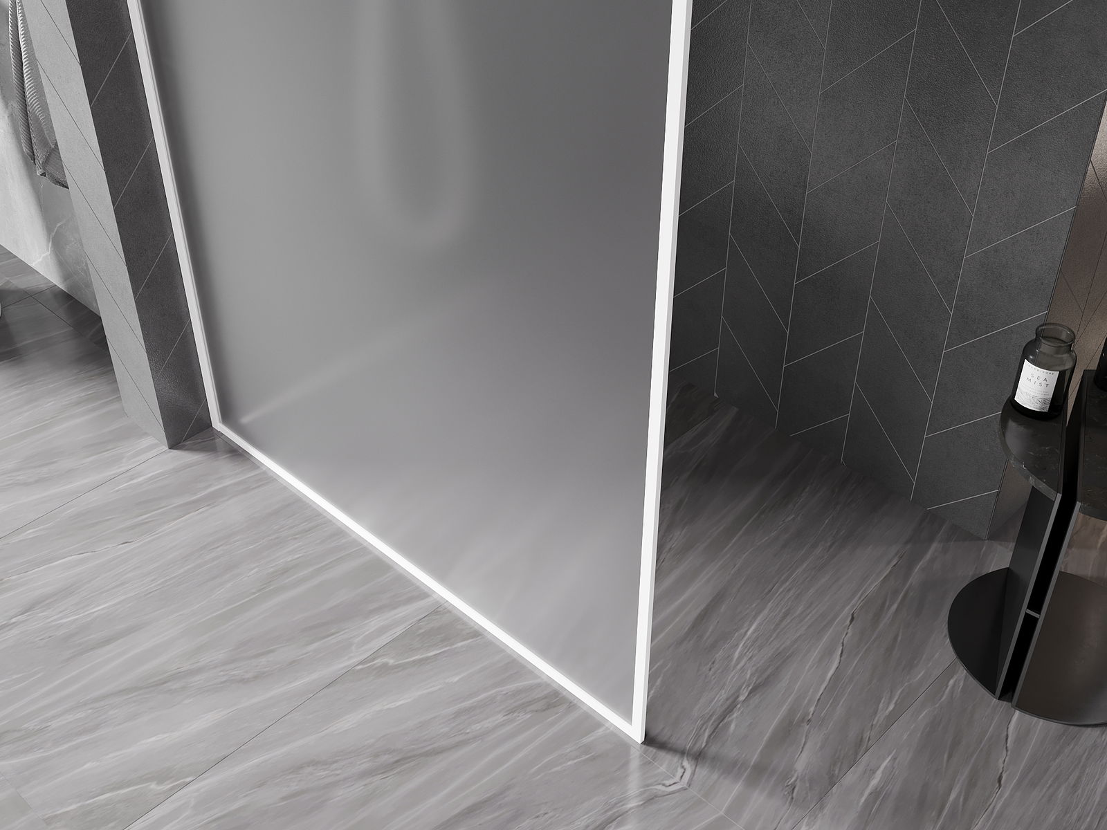 Mexen Kioto-F Suihkuseinä Walk-in kehyksellä 90 x 202 cm, huurre 8 mm, valkoinen - 800-090-104-20-30