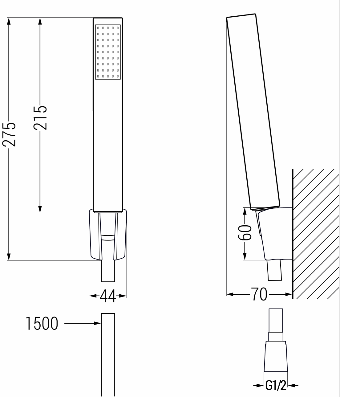 Käsisuihkun korkeus: 215 mm
