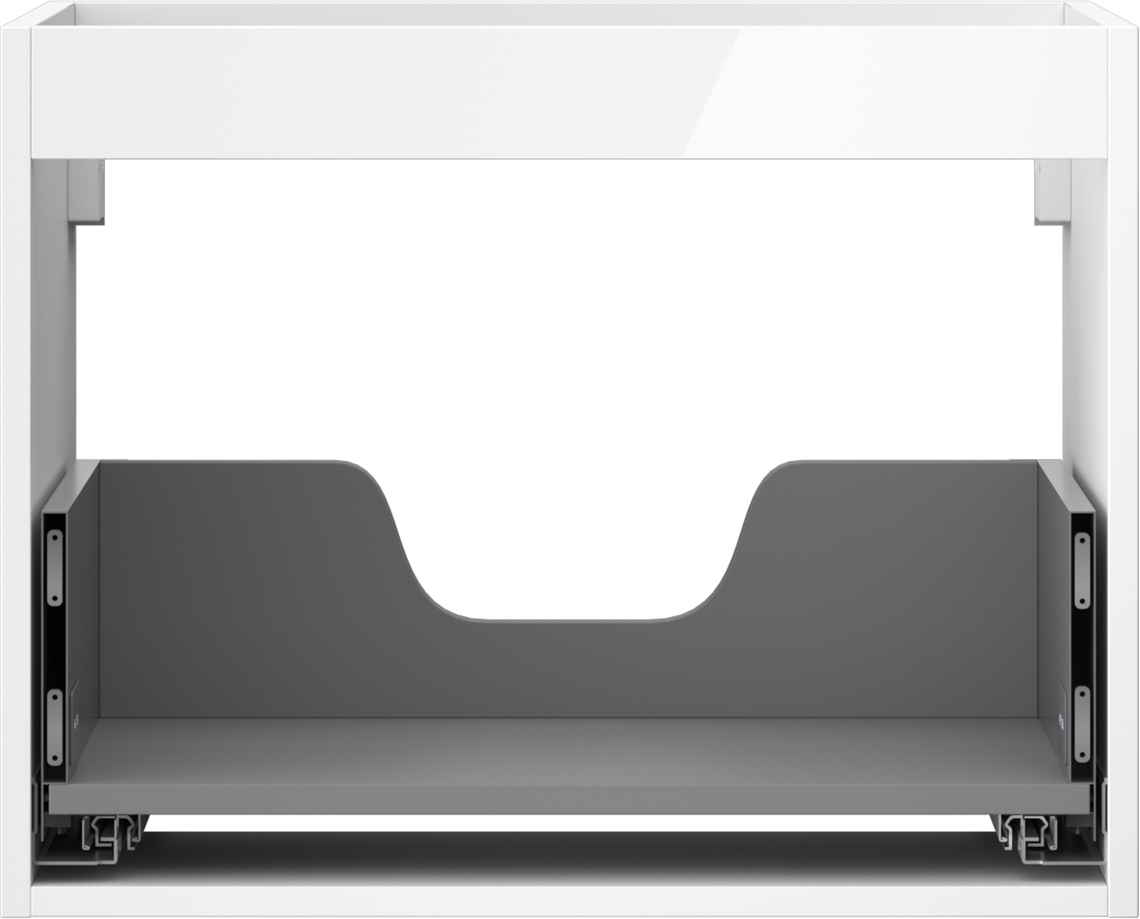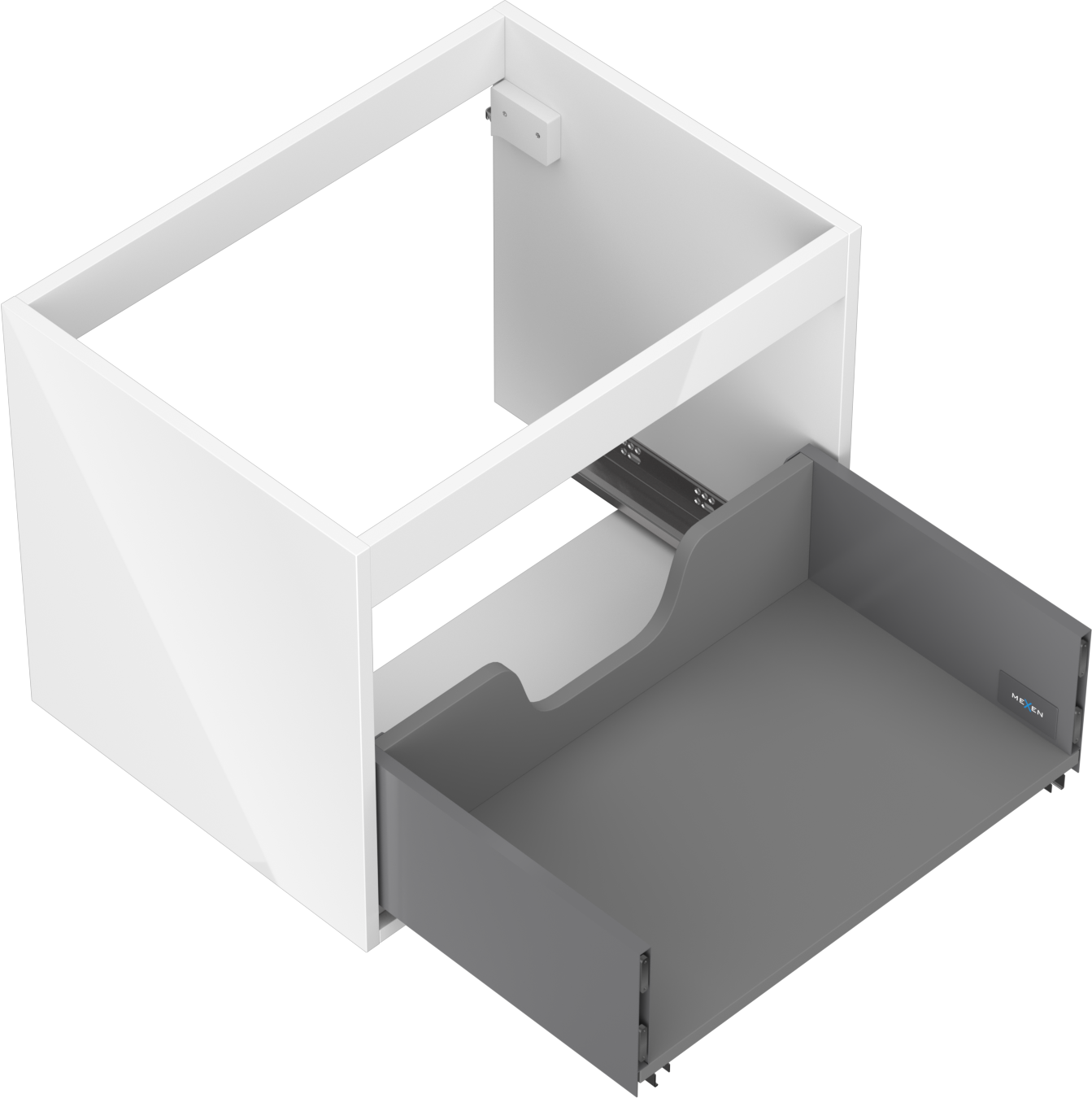 Laatikon leikkaus on suunniteltu siten, että se mahtuu vetolaitteeseen, joka on välttämätön pesuallasasennuksissa. Tämän ansiosta huonekalu voidaan asentaa täysin toimivasti, luopumatta laatikon tilasta asennusten hyväksi.