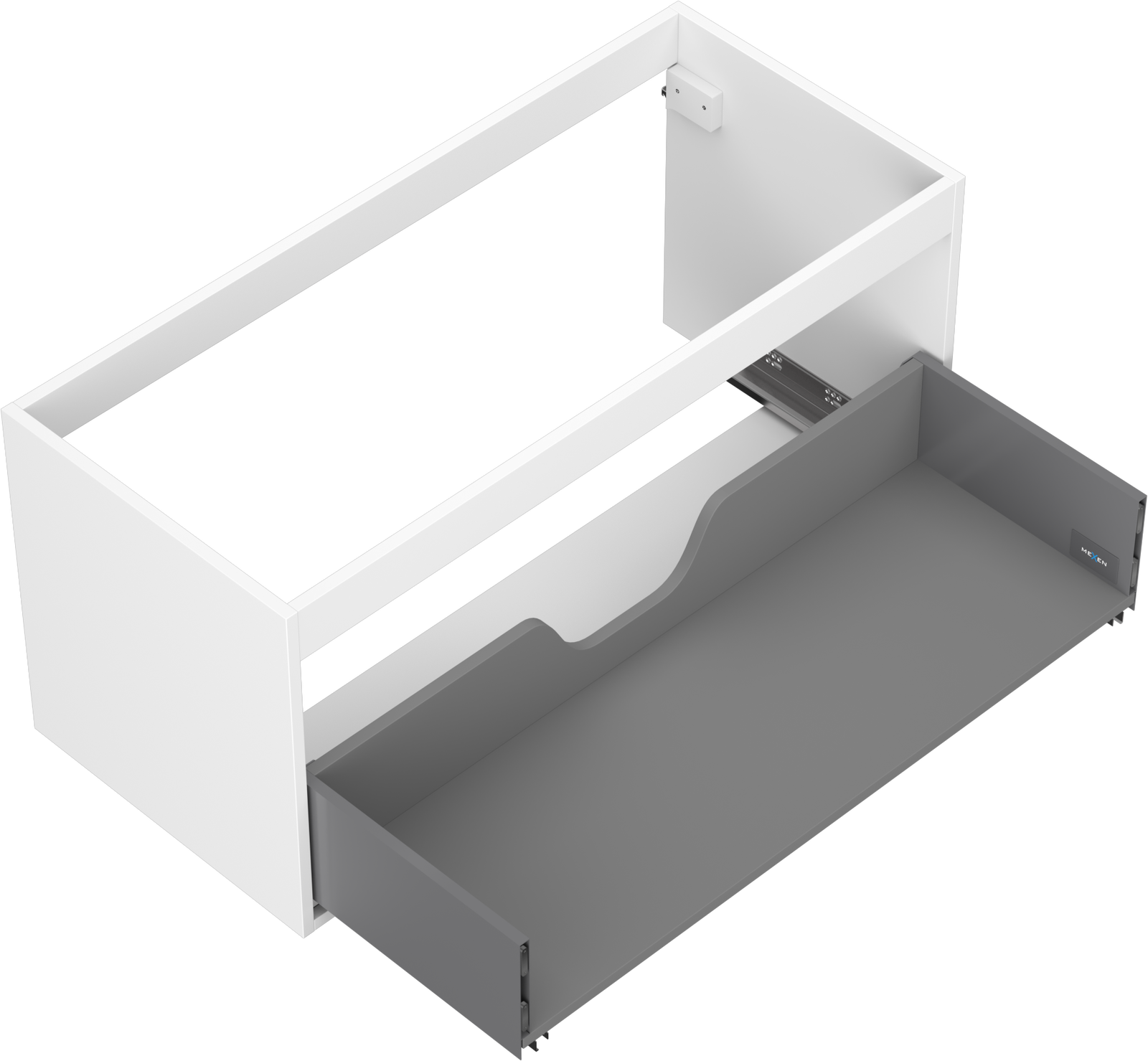 Laatikon leikkaus on suunniteltu siten, että se mahtuu vetolaitteeseen, joka on välttämätön pesuallasasennuksissa. Tämän ansiosta huonekalu voidaan asentaa täysin toimivasti, luopumatta laatikon tilasta asennusten hyväksi.