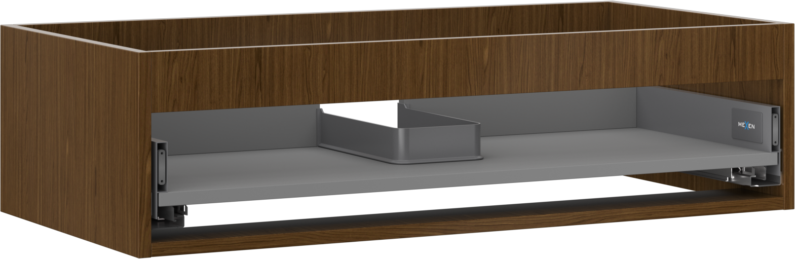 Laatikon leikkaus on suunniteltu siten, että se mahtuu vetolaitteeseen, joka on välttämätön pesuallasasennuksissa. Tämän ansiosta huonekalu voidaan asentaa täysin toimivasti, luopumatta laatikon tilasta asennusten hyväksi.