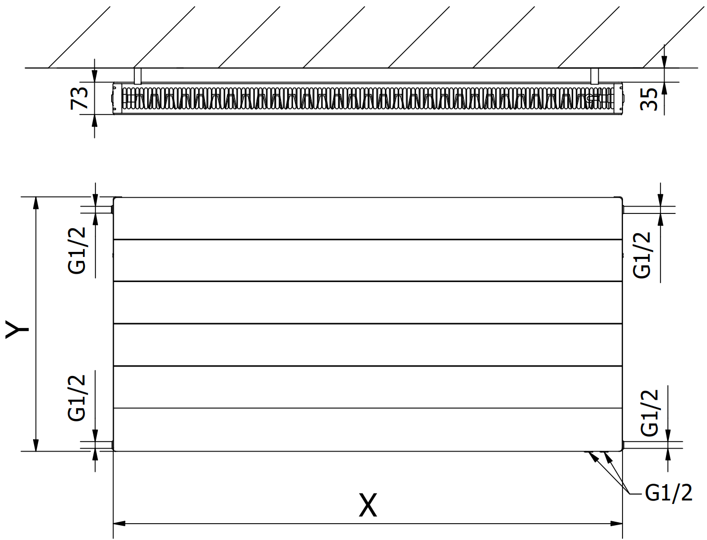 - 2xG ½″ alareunasta oikealta tai vasemmalta