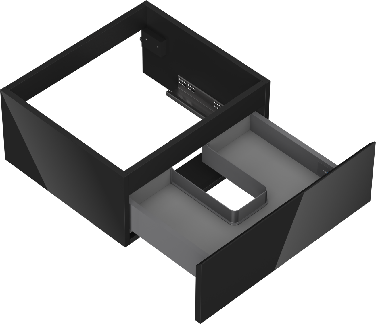 Laatikon leikkaus on suunniteltu siten, että se mahtuu vetolaitteeseen, joka on välttämätön pesuallasasennuksissa. Tämän ansiosta huonekalu voidaan asentaa täysin toimivasti, luopumatta laatikon tilasta asennusten hyväksi.