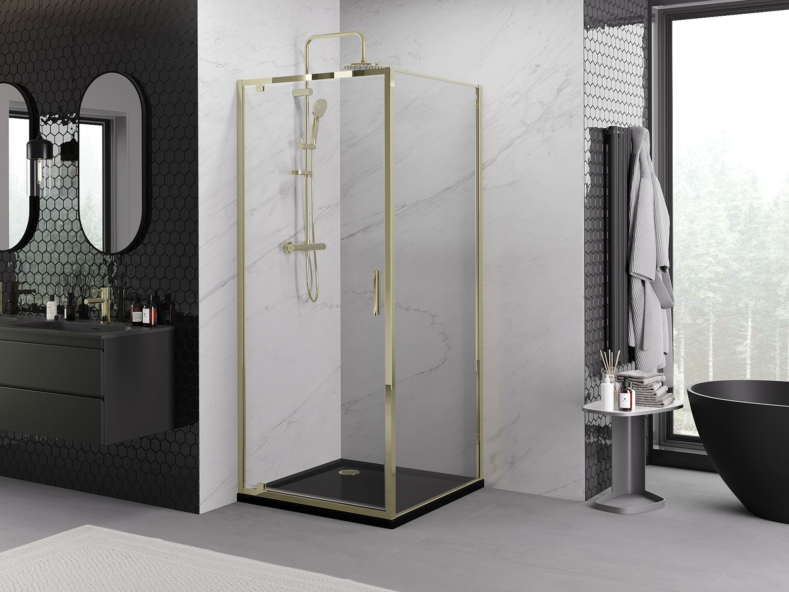 Mexen Exo kääntyvä suihkukoppi 75 x 75 cm, läpinäkyvä, kultainen - 8181-075-075-50-00