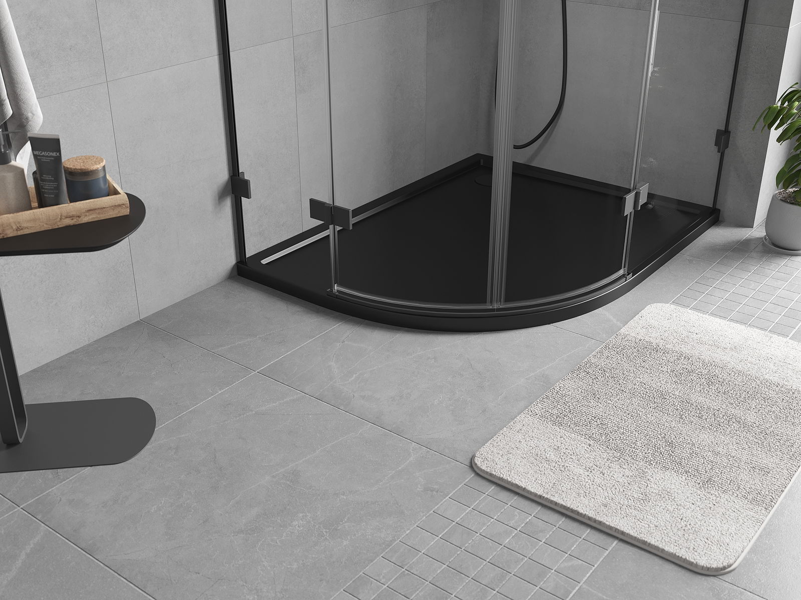 Mexen Flow asymmetrinen puoliympyrän muotoinen slim-oikea suihkualusta 90 x 80 cm, musta matta - 46Q708090R