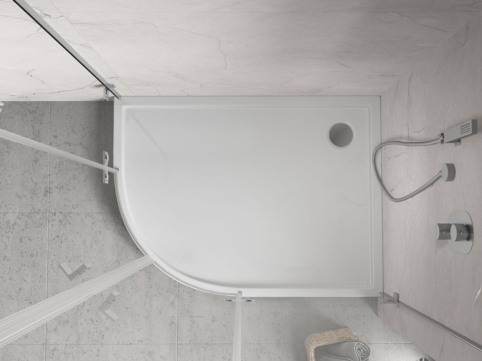 Mexen Flow+ puoliympyrän muotoinen epäsymmetrinen suihkualusta oikea 90 x 80 cm, valkoinen kiiltävä - 46Q108090RH