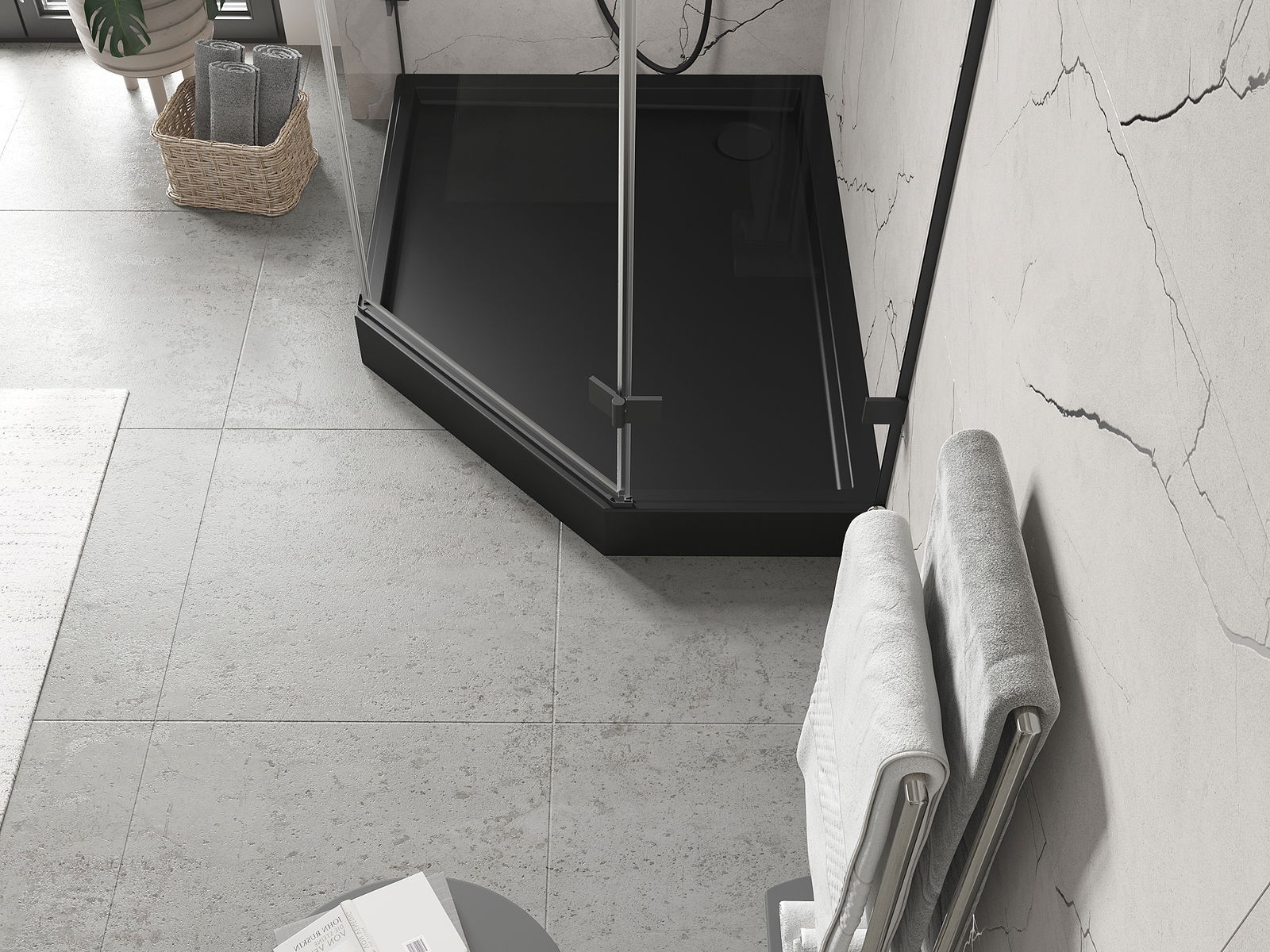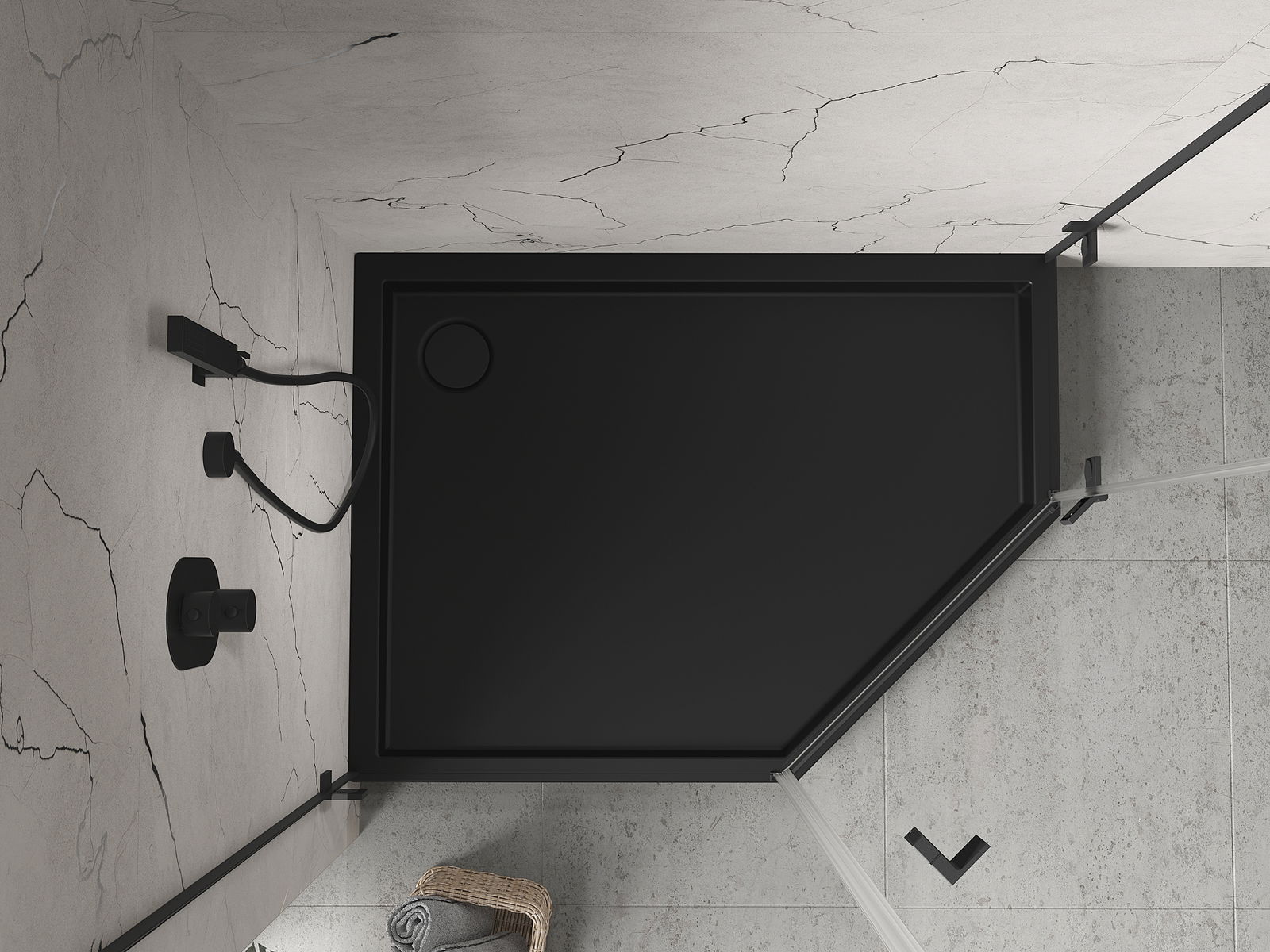 Mexen Flow+ vasenkätinen viisikulmainen suihkualusta 100 x 90 cm, musta mattapinta - 46P709010LH