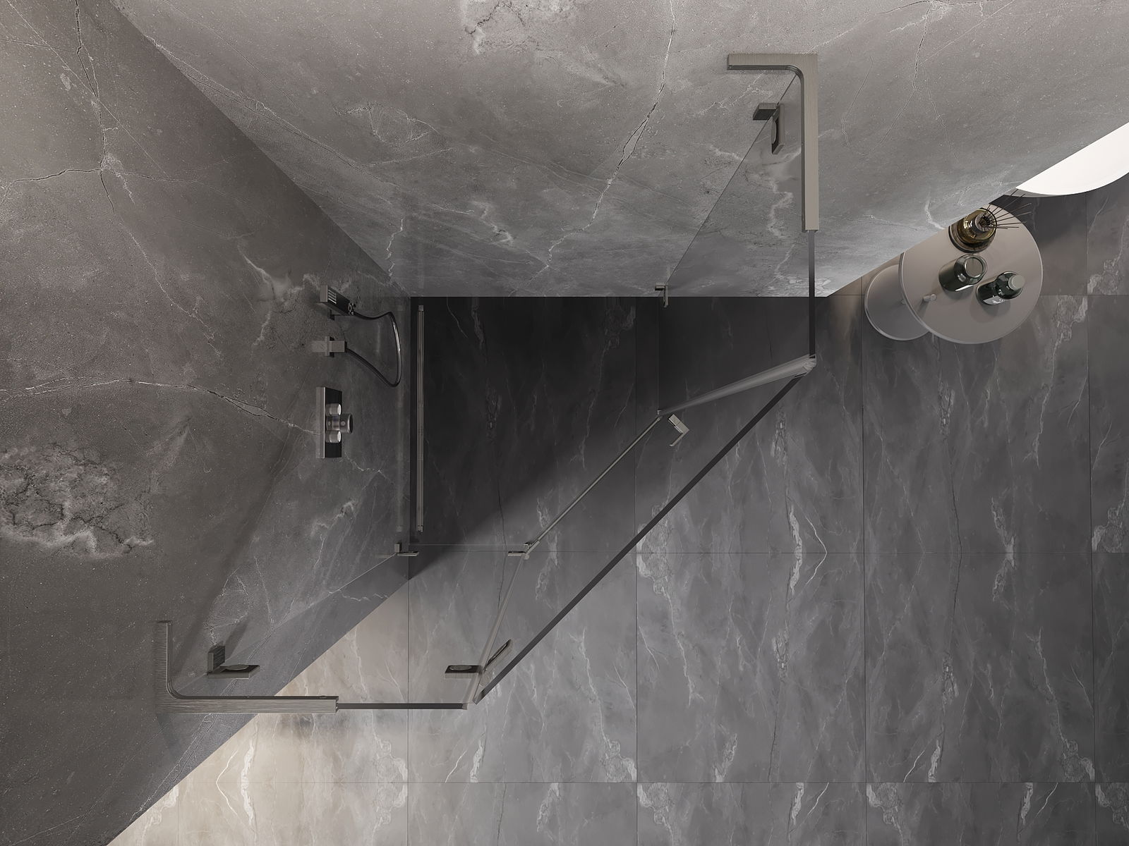 Mexen Lunar L viisikulmainen suihkukaappi avautuva vasen 80 x 80 cm, läpinäkyvä, harjattu nikkeli - 831L-080L-080P-97-00-L