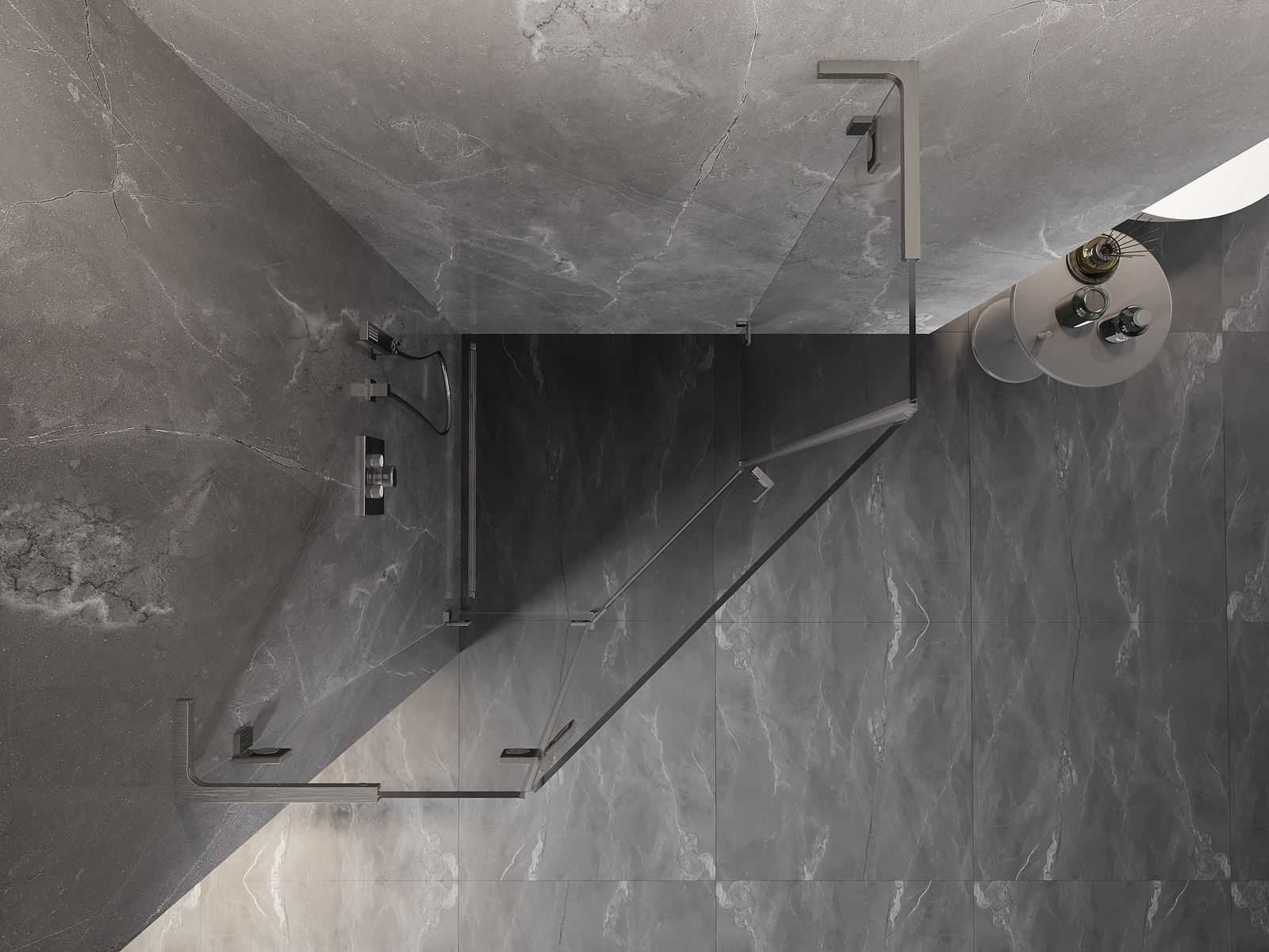 Mexen Lunar L viisikulmainen vasenkätinen suihkukoppi 100x100 cm, läpinäkyvä, harjattu nikkeli - 831L-100L-100P-97-00-L