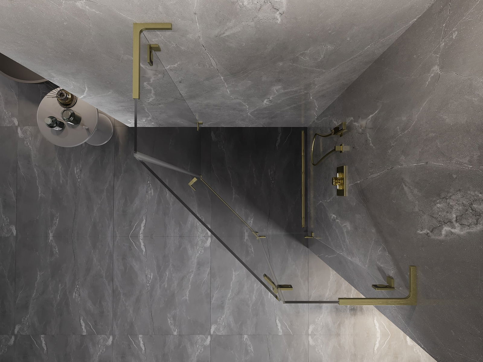 Mexen Lunar L viisikulmainen oikeaan kääntyvä suihkukaappi 90 x 90 cm, kirkas, kultaharjattu - 831L-090P-090L-55-00-P