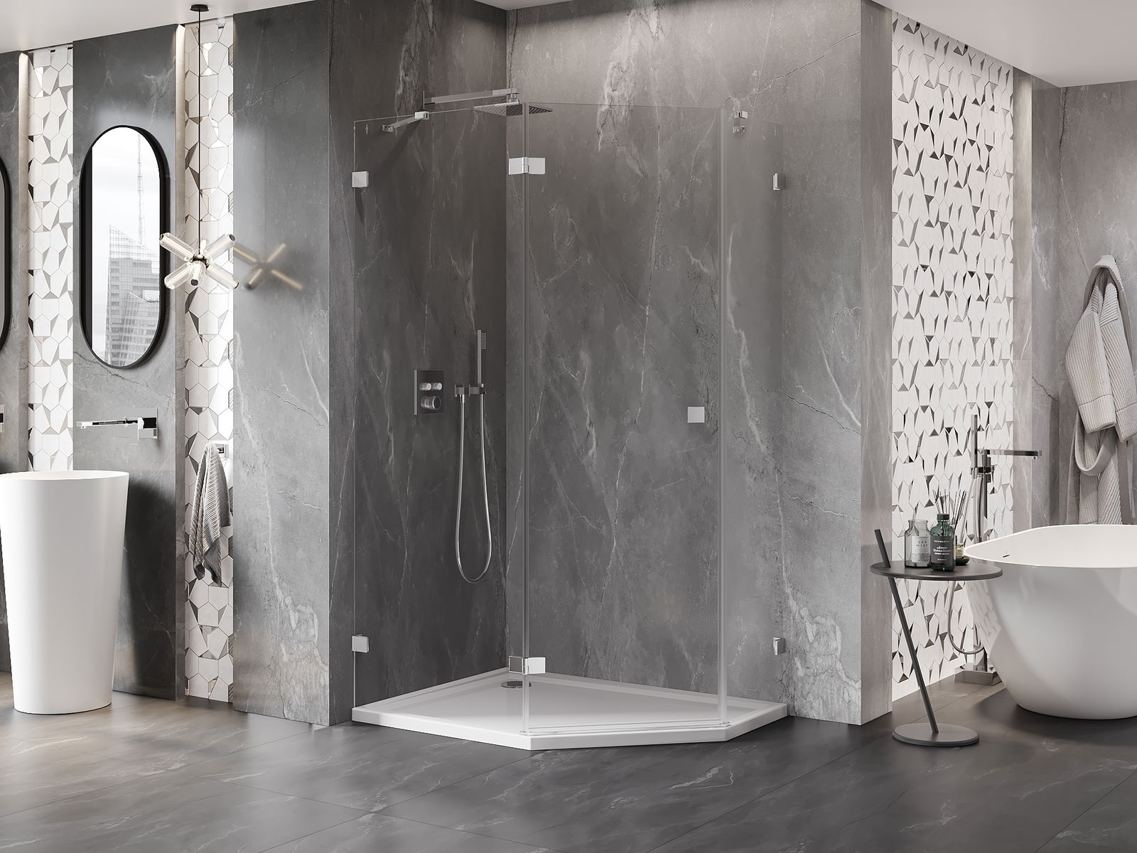 Mexen Lunar viisikulmainen suihkukoppi, vasen kääntyvä, 100 x 90 cm, läpinäkyvä, kromi - 831-100L-090P-01-00-L
