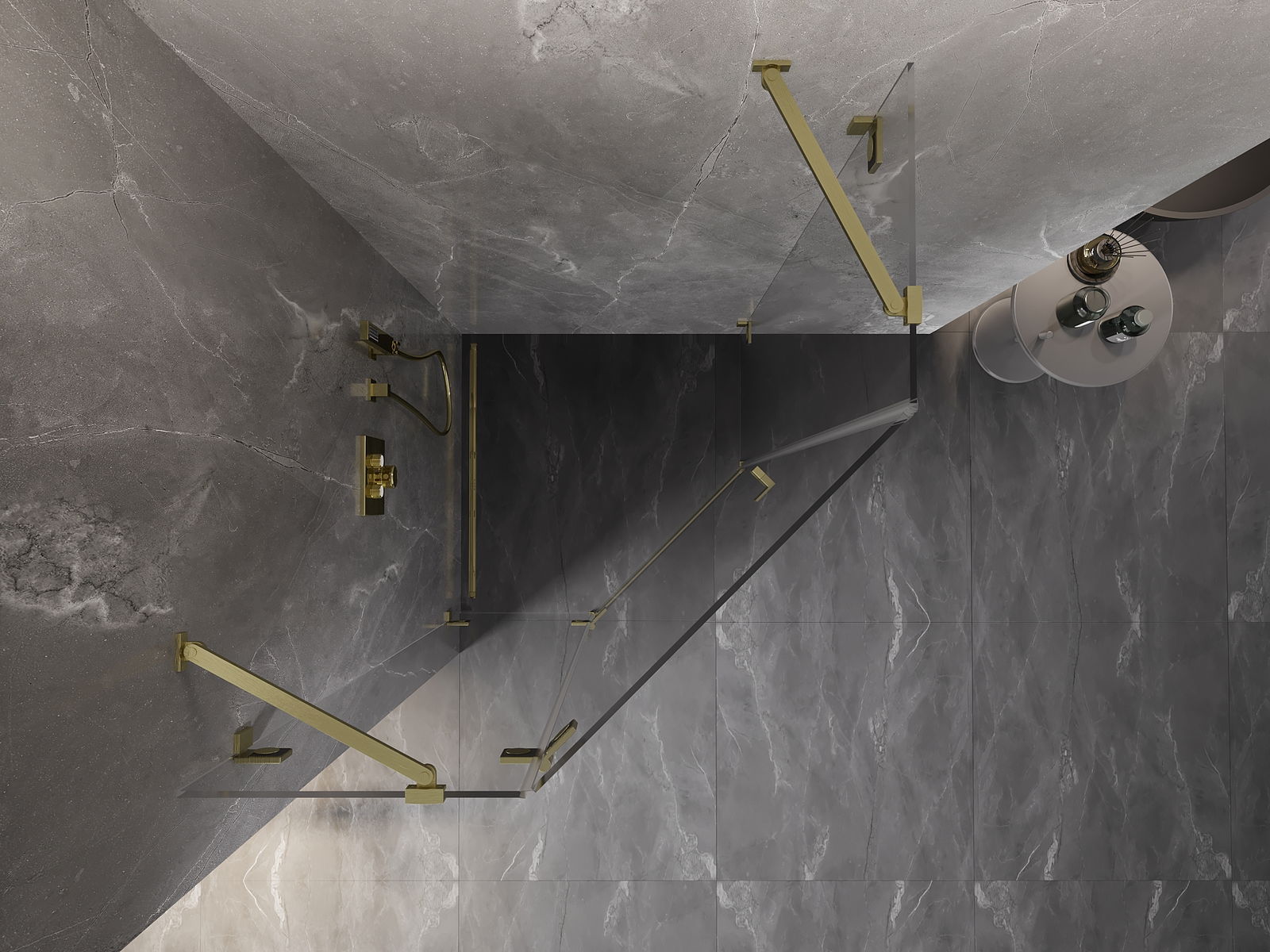 Mexen Lunar viisikulmainen suihkukaappi avattava vasen 80 x 80 cm, läpinäkyvä, kullanharjattu - 831-080L-080P-55-00-L