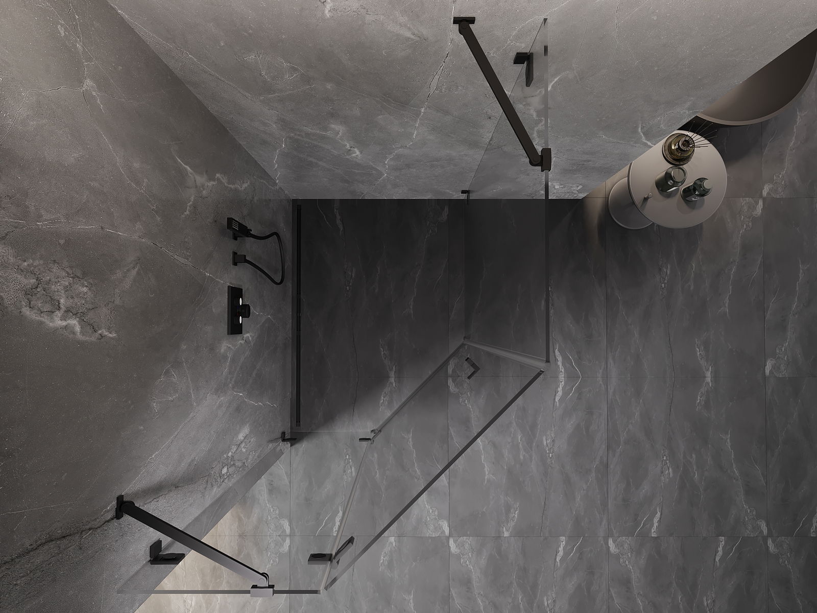 Mexen Lunar viisikulmainen kääntyvä vasen suihkukaappi 80 x 90 cm, läpinäkyvä, musta - 831-080L-090P-70-00-L