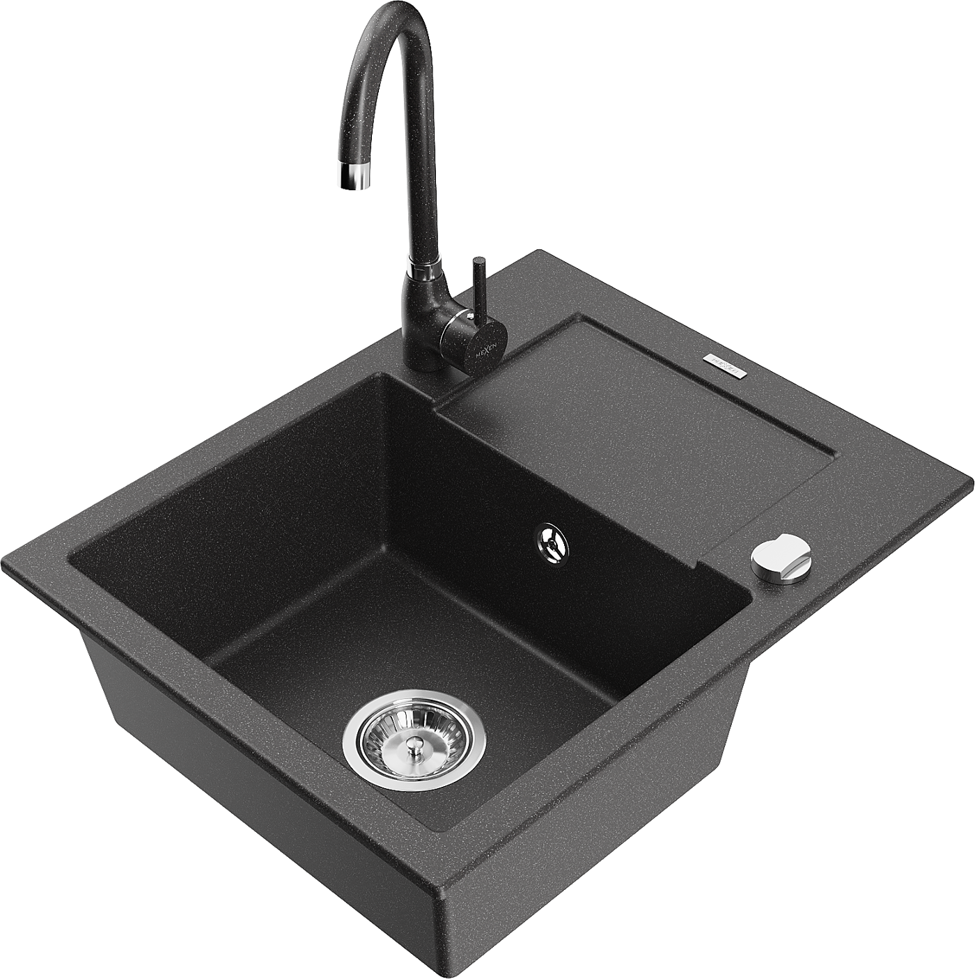Mexen Enzo graniittinen 1-allas tiskiallas valutustasolla ja Telma-keittiöhanalla, musta pilkullinen - 6506-76-670200-76