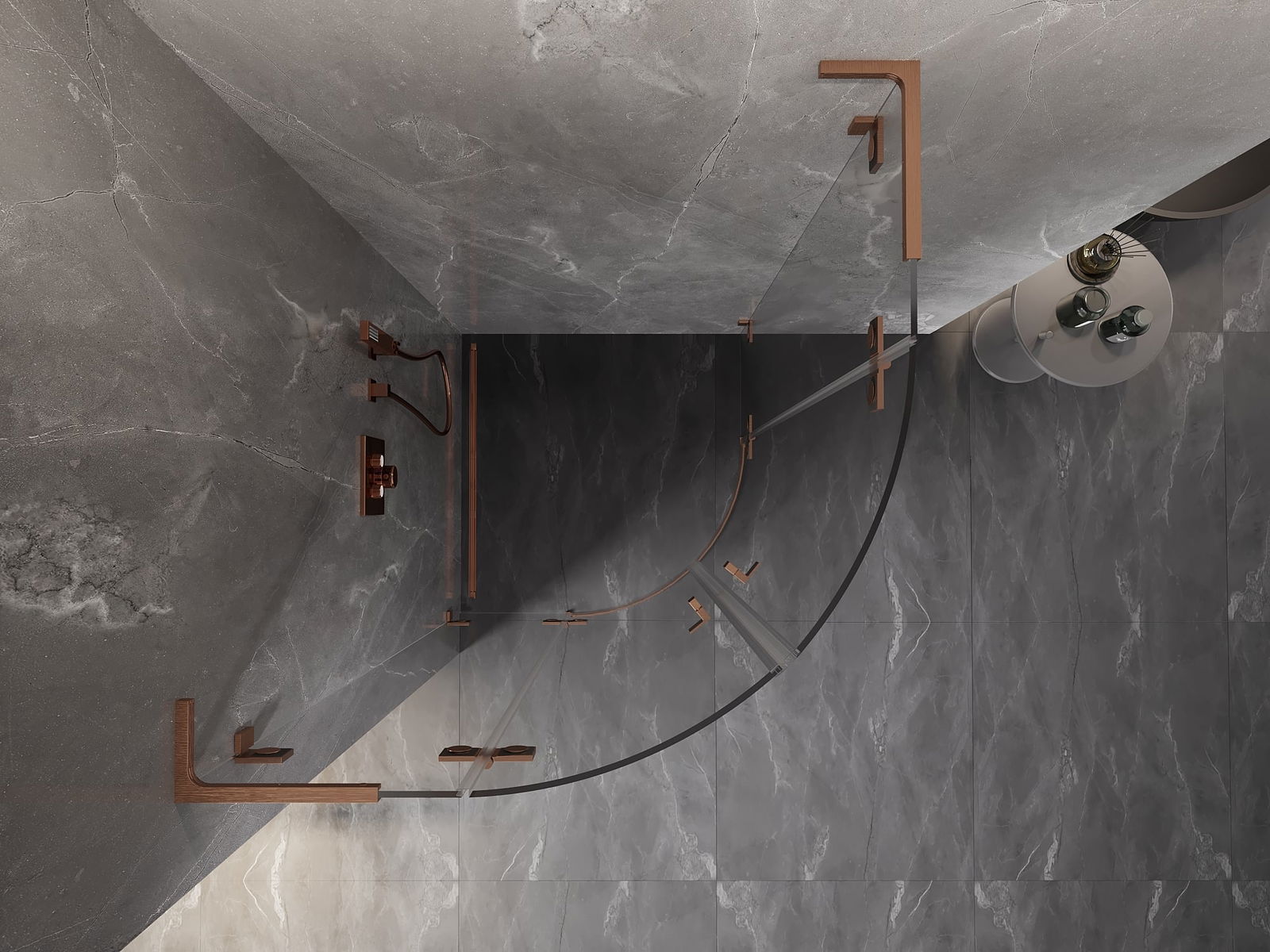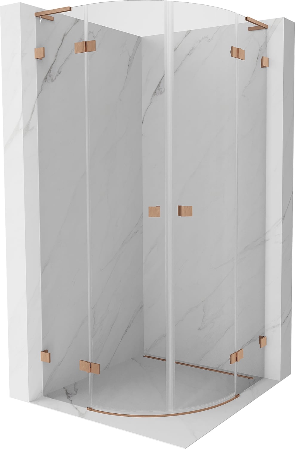 Mexen Lunar L Puoliympyrän muotoinen suihkukaappi avautuva 100 x 100 cm, läpinäkyvä, harjattu kupari - 833L-100L-100P-65-00