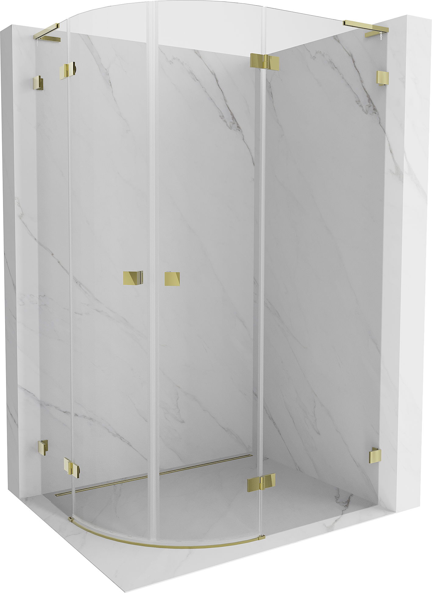 Mexen Lunar L puoliympyrän suihkukaappi, kääntyvä oikea 100 x 80 cm, läpinäkyvä, harjattu kulta - 833L-100P-080L-55-00