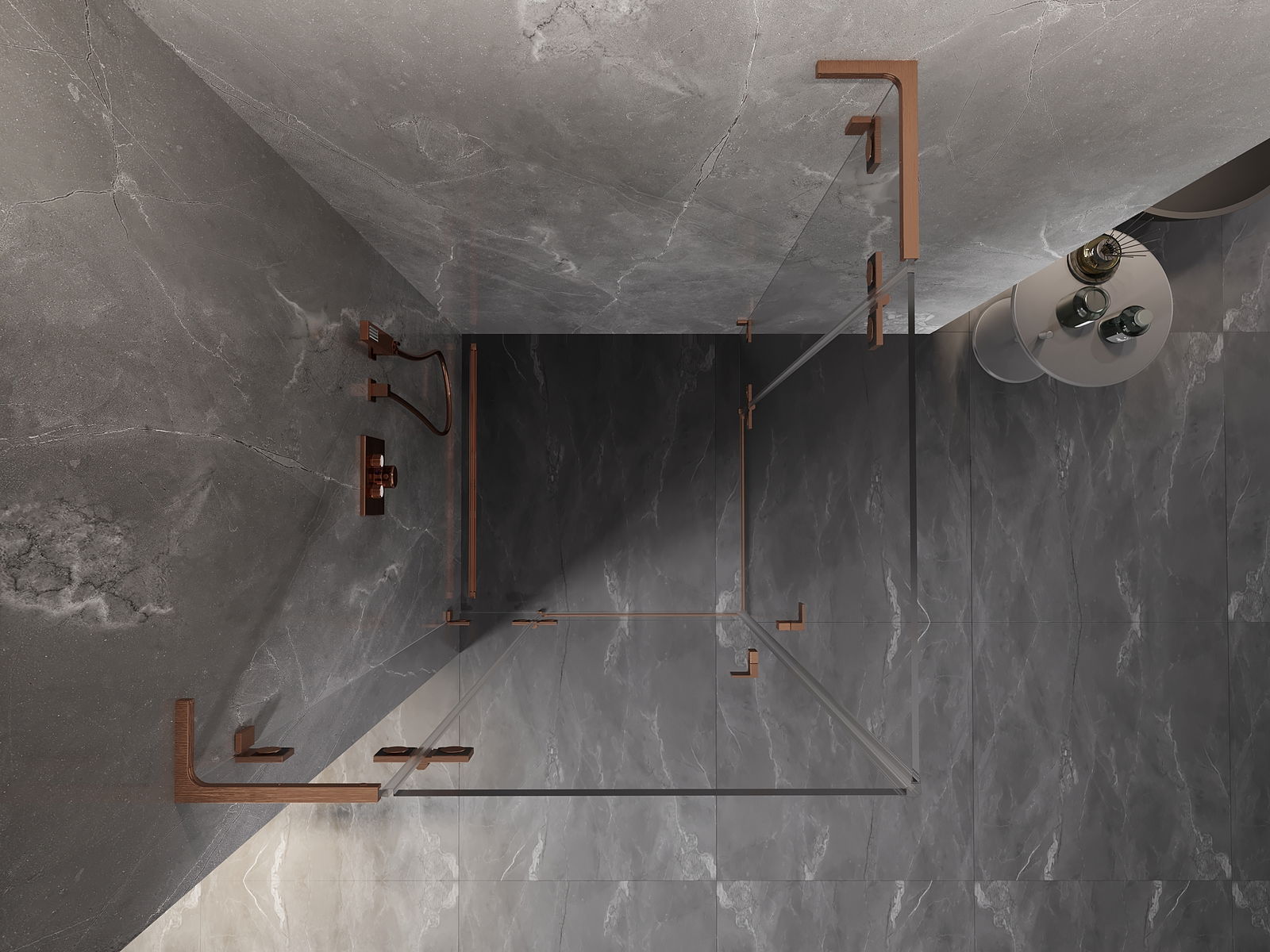 Mexen Lunar L Duo 80 x 80 cm kääntyvä suihkukoppi, läpinäkyvä, harjattu kupari - 834L-080L-080P-65-00