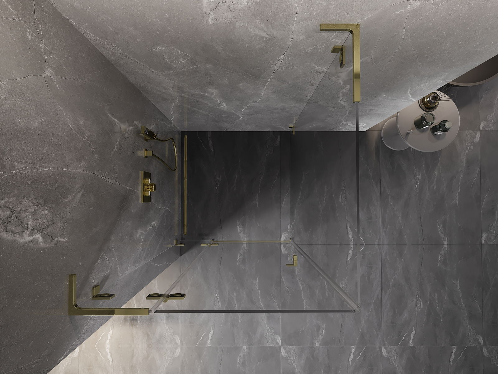 Mexen Lunar L käännettävä suihkukoppi, vasen puoli, 100 x 100 cm, läpinäkyvä, kultainen - 834L-100-100-50-00-L