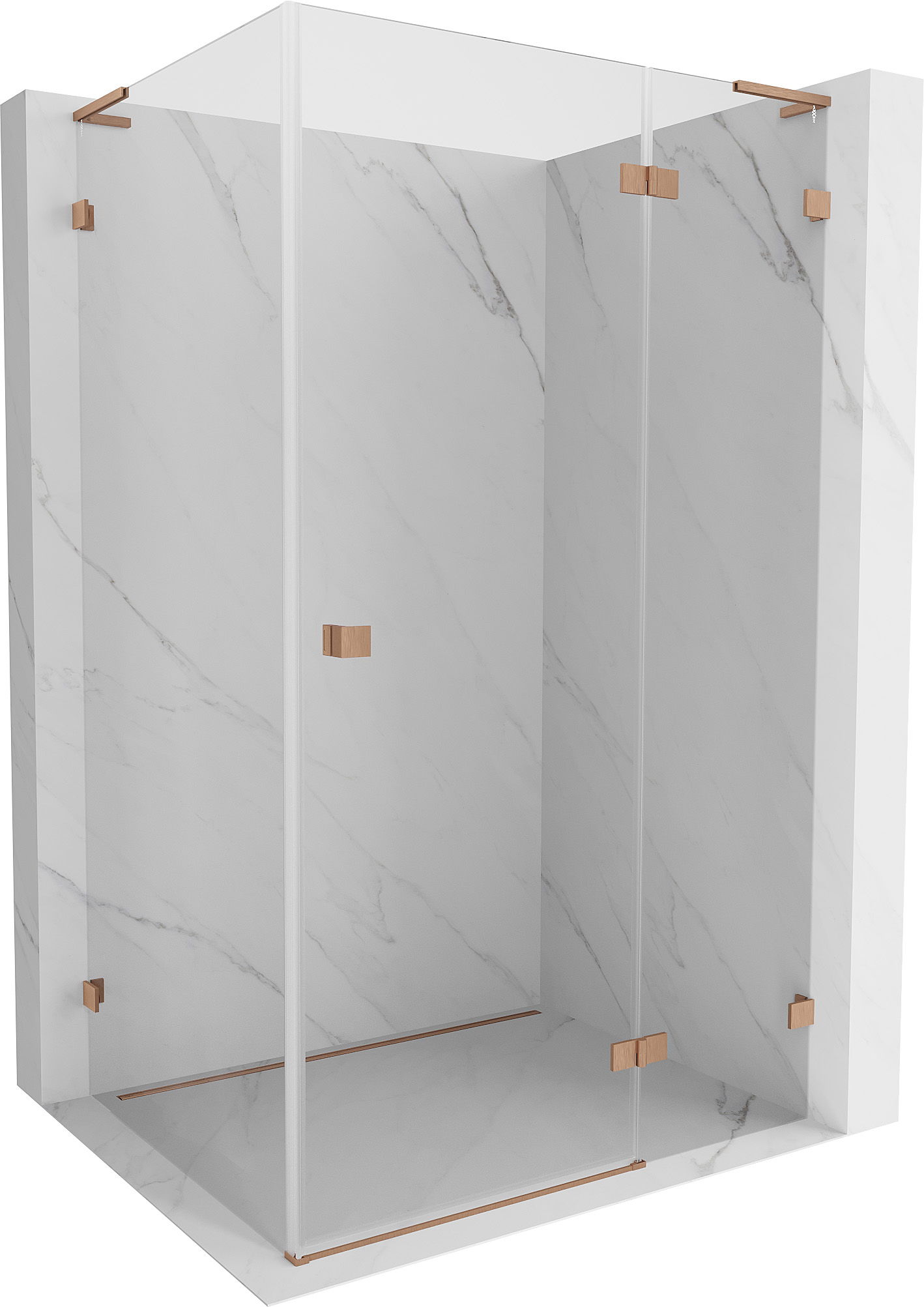 Mexen Lunar L kallistuva suihkukaappi oikea 95 x 70 cm, läpinäkyvä, harjattu kupari - 834L-095-070-65-00-P