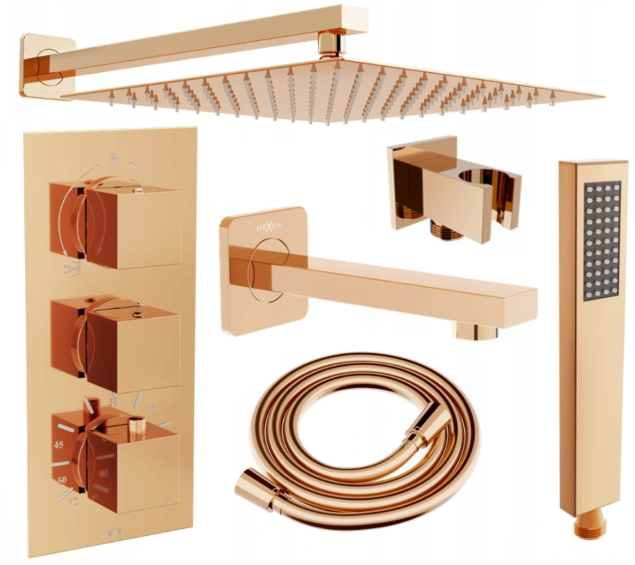 Mexen Cube DR02 upotettavat kylpyamme-suihkusetti sadesuihkulla 25 cm, ruusukulta - 77503DR0225-60