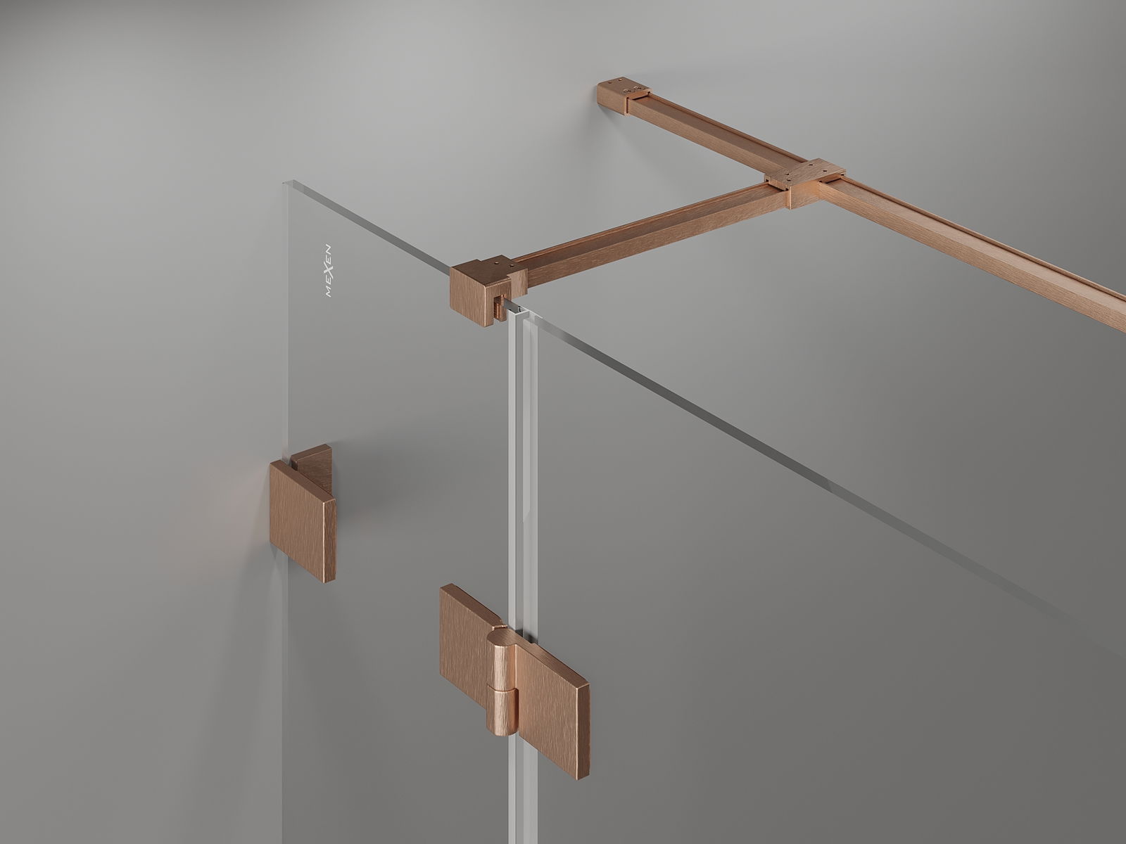 Mexen Lunar T käännettävä suihkukaappi vasen 125 x 120 cm, läpinäkyvä, harjattu kupari - 834T-125-120-65-00-L