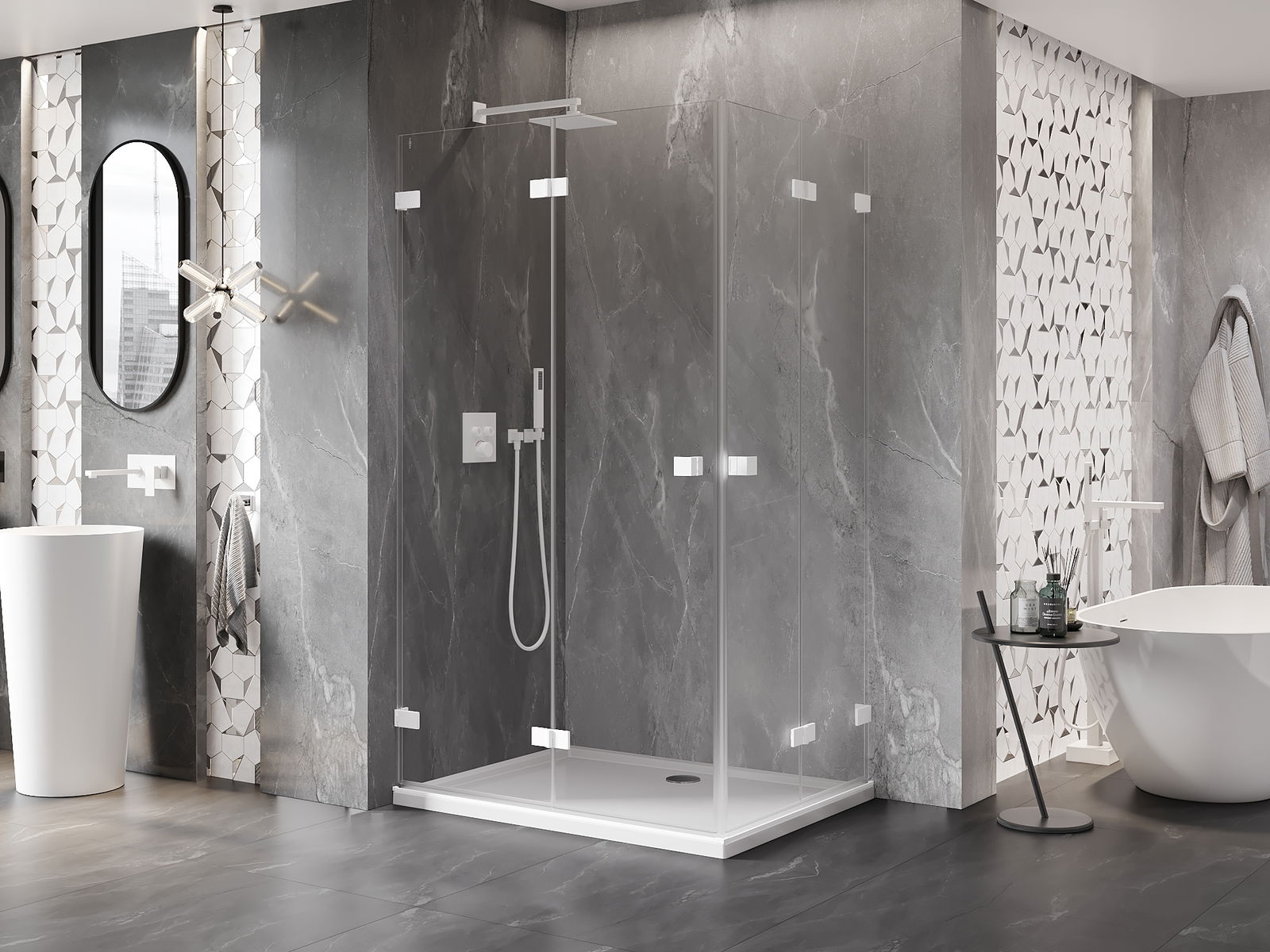 Pidikkeet ja saranat on valmistettu erittäin kestävästä messingistä, ja ne muodostavat lisäksilinjassa olevan lasilevyn. Tämä on erinomainen valinta, joka yhdistää eleganssin, kestävyyden ja modernin muotoilun. Tällaisilla ratkaisuilla suihku parantaa esteettisyyttä, ja samalla helpottavat puhtauden ylläpitämistä.