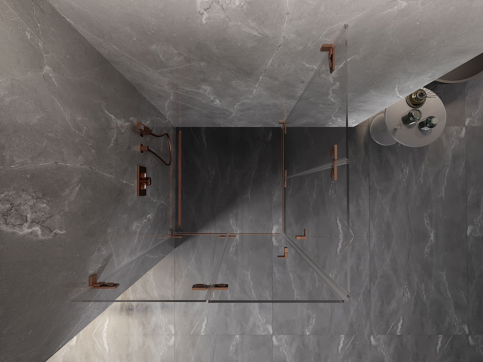 Mexen Lunar-F Kaksinkertainen taittuva suihkukoppi 90 x 90 cm, läpinäkyvä, harjattu kupari - 836-090L-090P-65-00