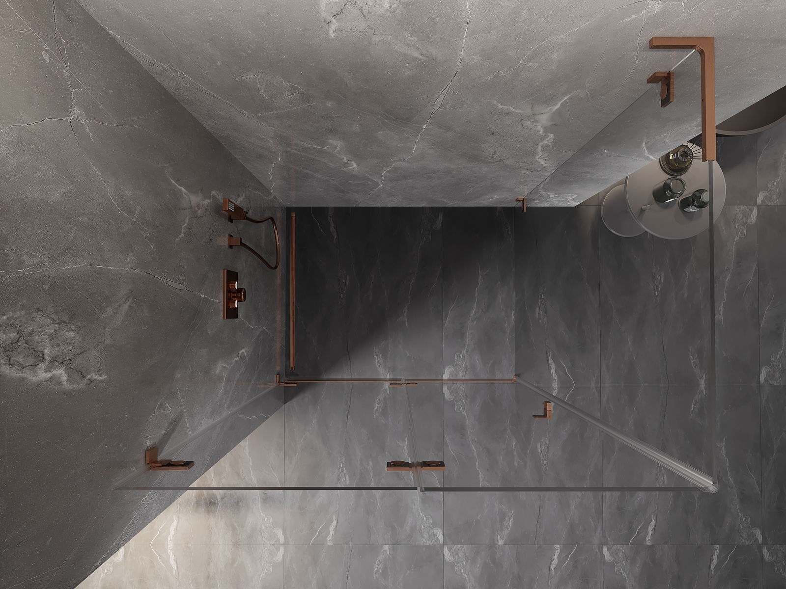 Mexen Lunar-F L taittuva suihkukaappi vasen 90 x 70 cm, läpinäkyvä, harjattu kupari - 836L-090-070-65-00-L