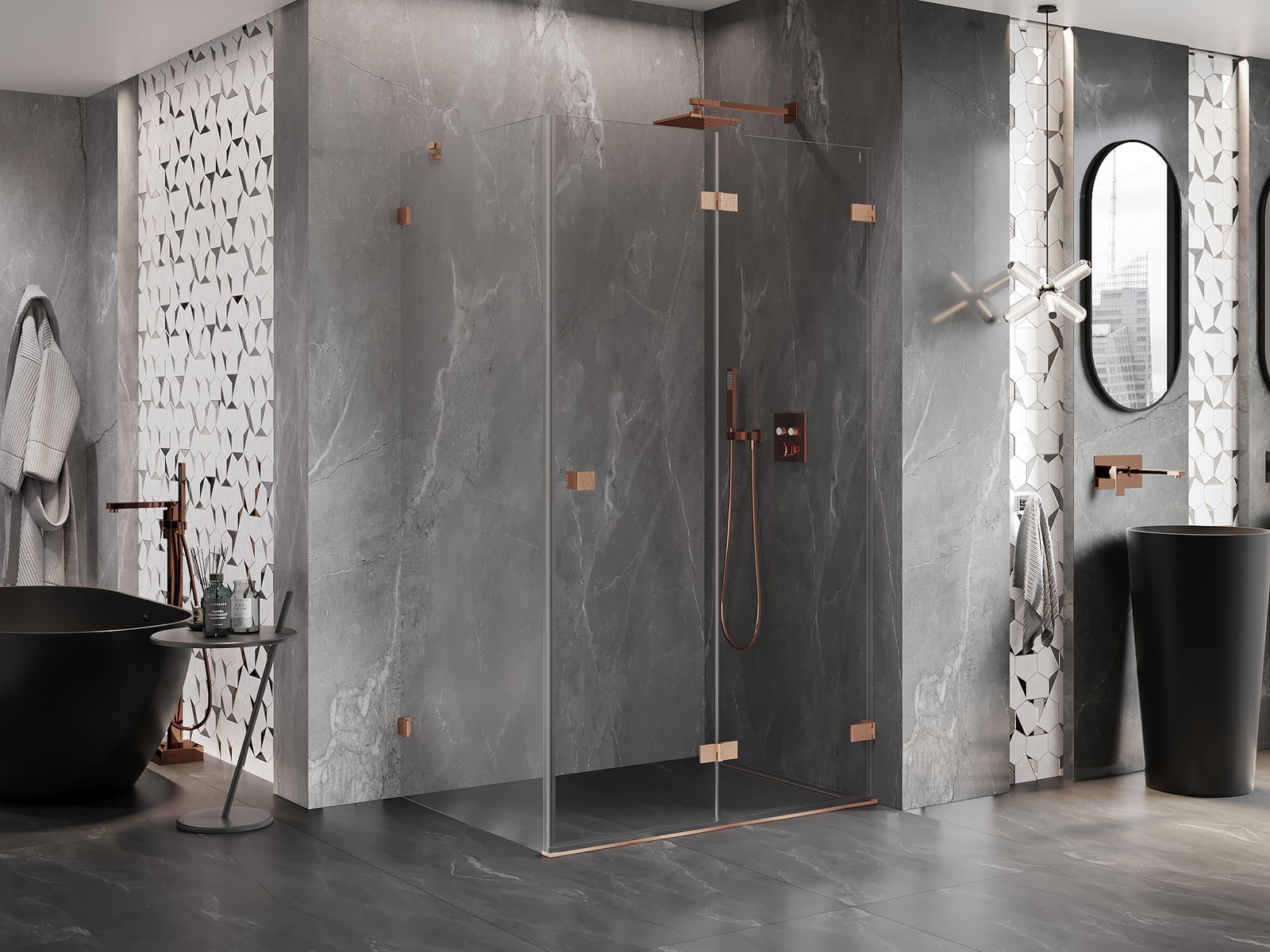 Pidikkeet ja saranat on valmistettu erittäin kestävästä messingistä, ja ne muodostavat lisäksilinjassa olevan lasilevyn. Tämä on erinomainen valinta, joka yhdistää eleganssin, kestävyyden ja modernin muotoilun. Tällaisilla ratkaisuilla suihku parantaa esteettisyyttä, ja samalla helpottavat puhtauden ylläpitämistä.