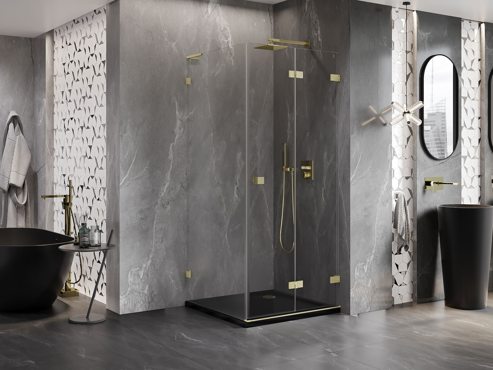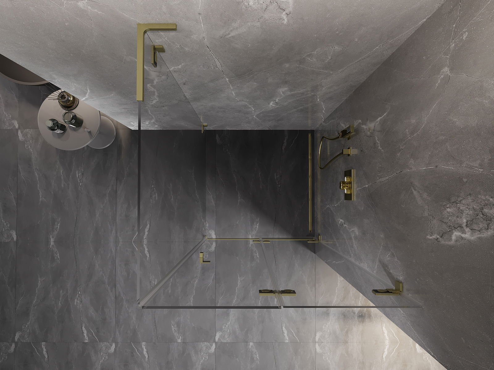 Mexen Lunar-F L Oikeanpuoleinen taittuva suihkukoppi 100 x 100 cm, läpinäkyvä, harjattu kulta - 836L-100-100-55-00-P