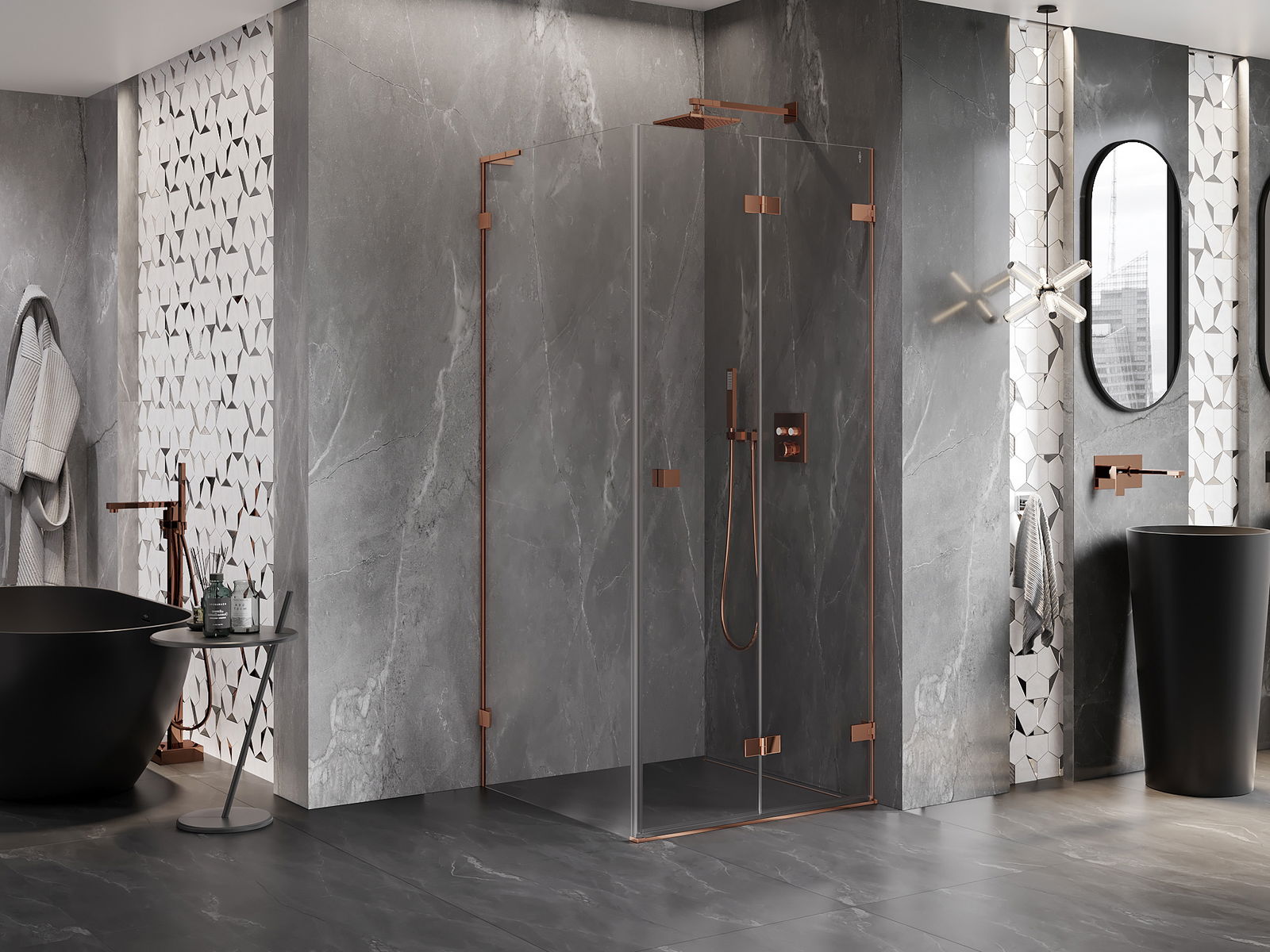 Mexen Lunar-F L taittuva suihkukaappi oikea 80 x 80 cm, läpinäkyvä, ruusukulta - 836L-080-080-60-00-P