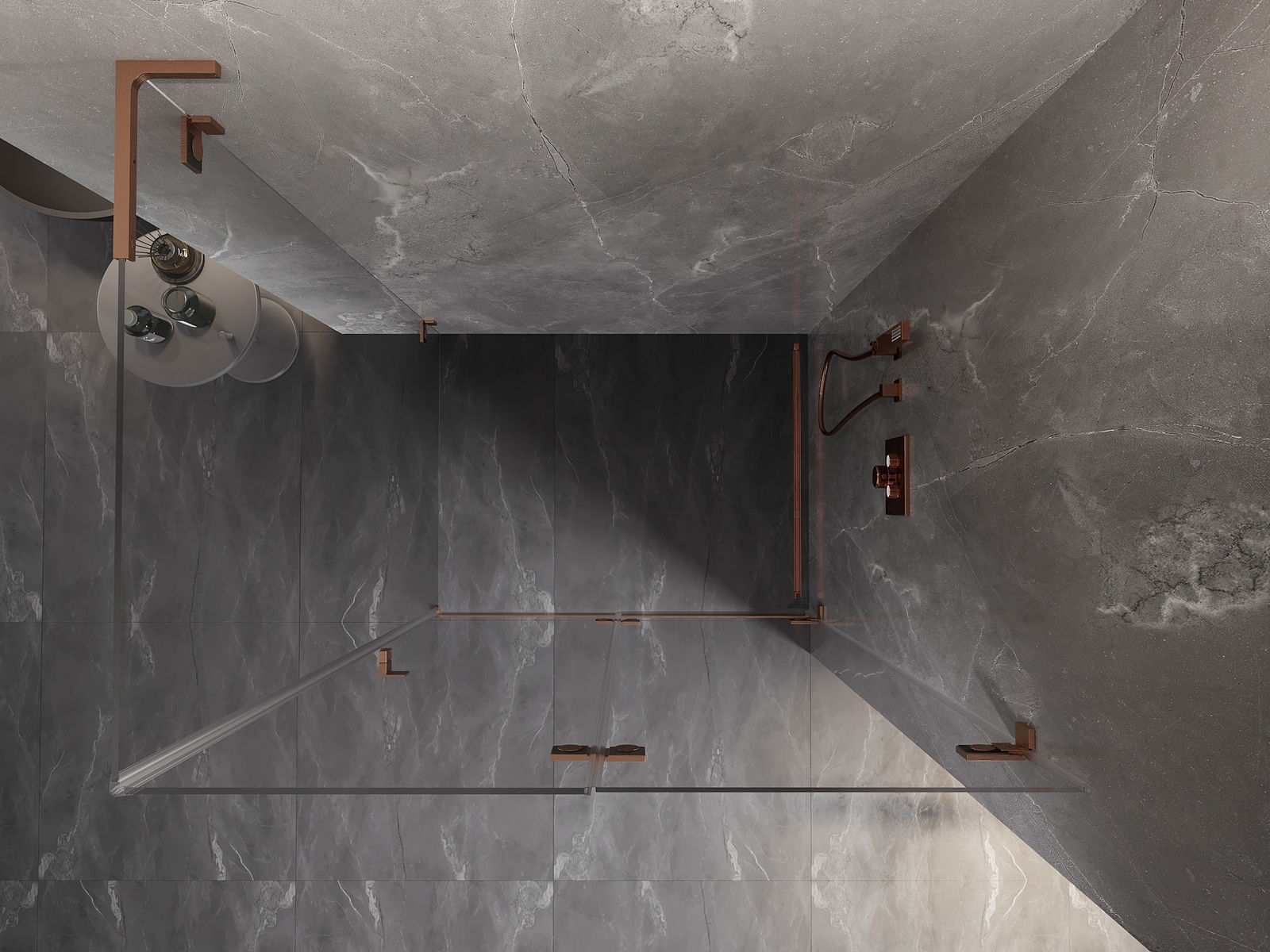 Mexen Lunar-F L taittuva suihkukoppi oikea 100 x 70 cm, läpinäkyvä, harjattu kupari - 836L-100-070-65-00-P