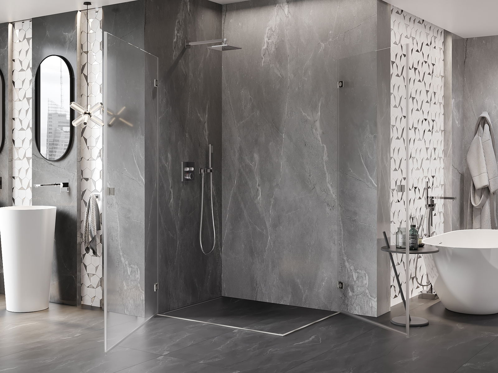Tuotteen voi tarpeen mukaan asentaa sekä suihkualustalle että suoraan lattialle. Yleismaailmallinen asennustapa mahdollistaa tuotteen mukauttamisen erilaisten kylpyhuoneiden ja tilakonfiguraatioiden mukaan.