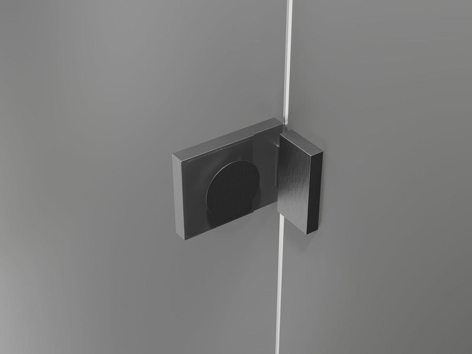 Messinkiset vetimet ja saranat, jotka ovat tasassa lasipinnan kanssa