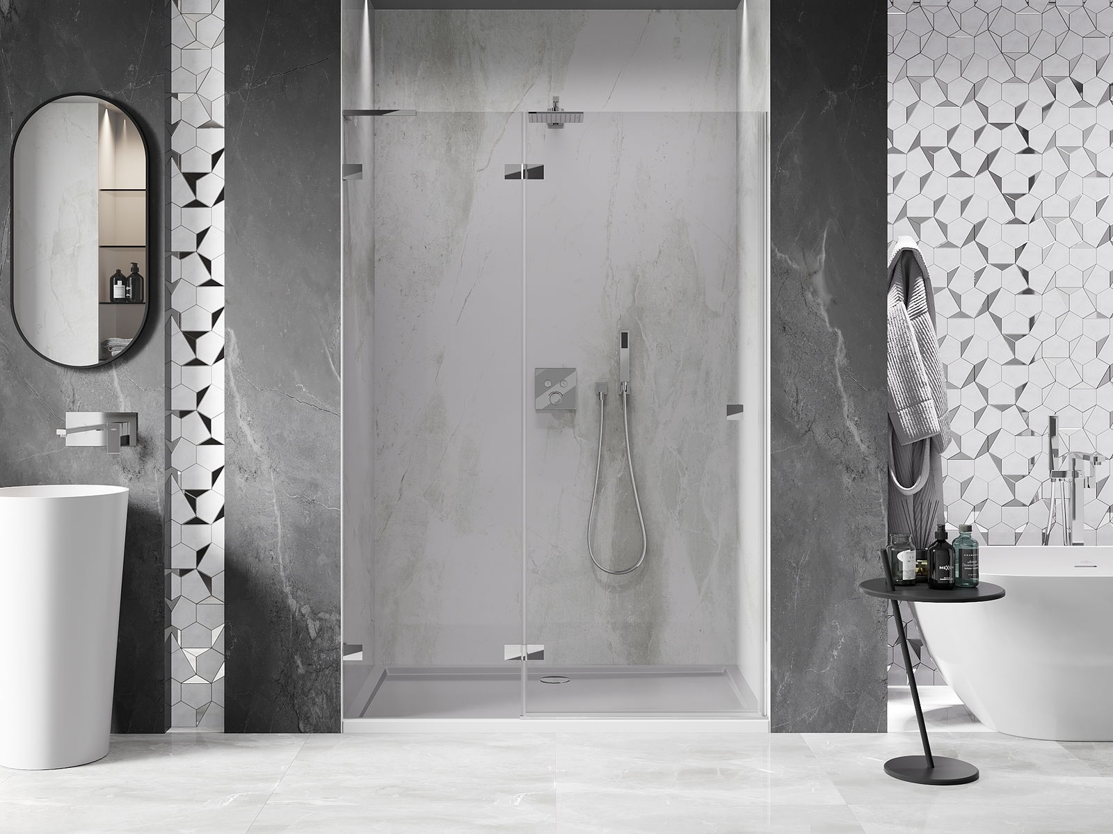 Pidikkeet ja saranat on valmistettu erittäin kestävästä messingistä, ja ne muodostavat lisäksilinjassa olevan lasilevyn. Tämä on erinomainen valinta, joka yhdistää eleganssin, kestävyyden ja modernin muotoilun. Tällaisilla ratkaisuilla suihku parantaa esteettisyyttä, ja samalla helpottavat puhtauden ylläpitämistä.