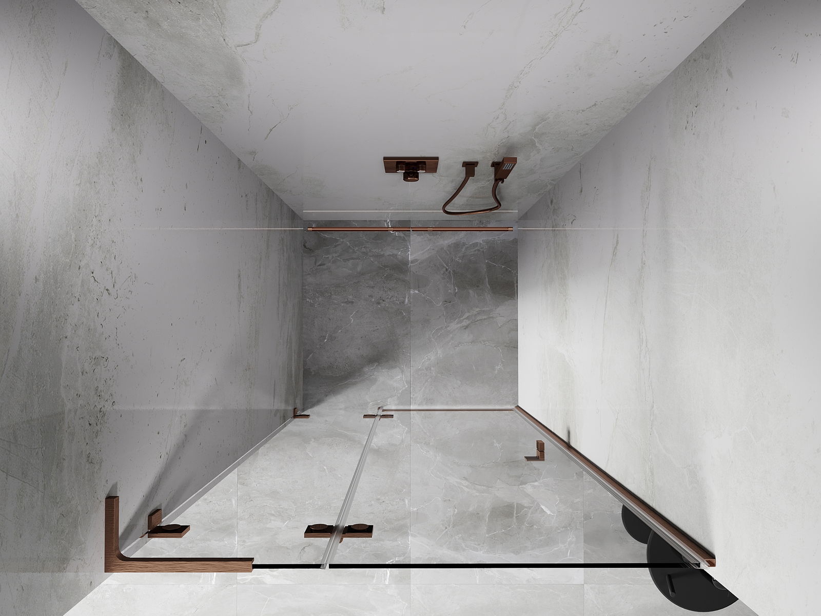 Mexen Lunar L vasen 75 cm kääntyvä suihkuovi, läpinäkyvä, harjattu kupari - 834L-075-000-65-00-L