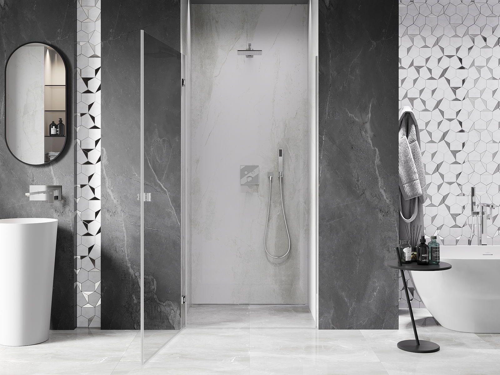 Tuotteen voi tarpeen mukaan asentaa sekä suihkualustalle että suoraan lattialle. Yleismaailmallinen asennustapa mahdollistaa tuotteen mukauttamisen erilaisten kylpyhuoneiden ja tilakonfiguraatioiden mukaan.