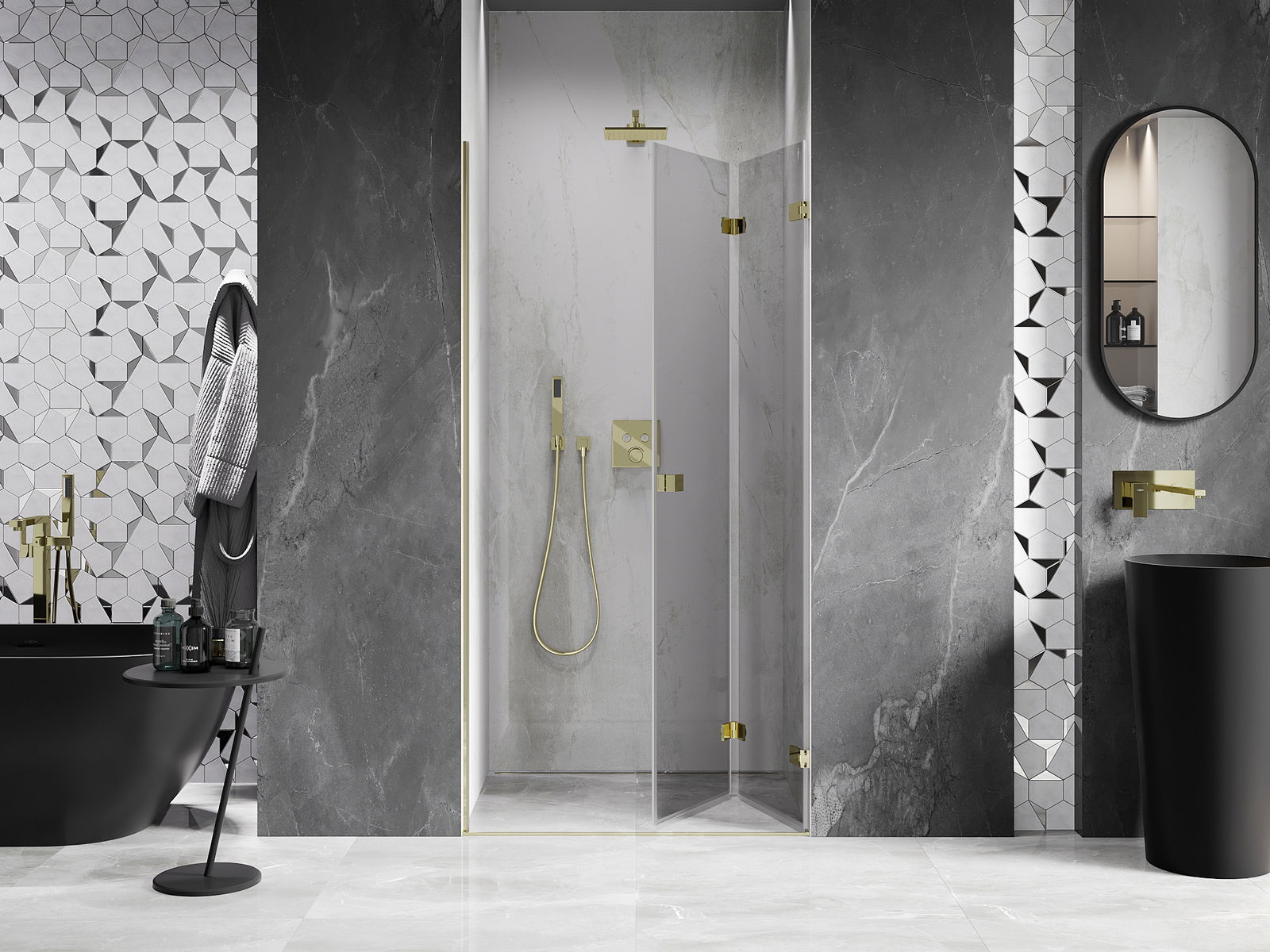 Mexen Lunar-F suihkuovi taittuva oikea 100 cm, läpinäkyvä, kulta - 836-100-000-50-00-P