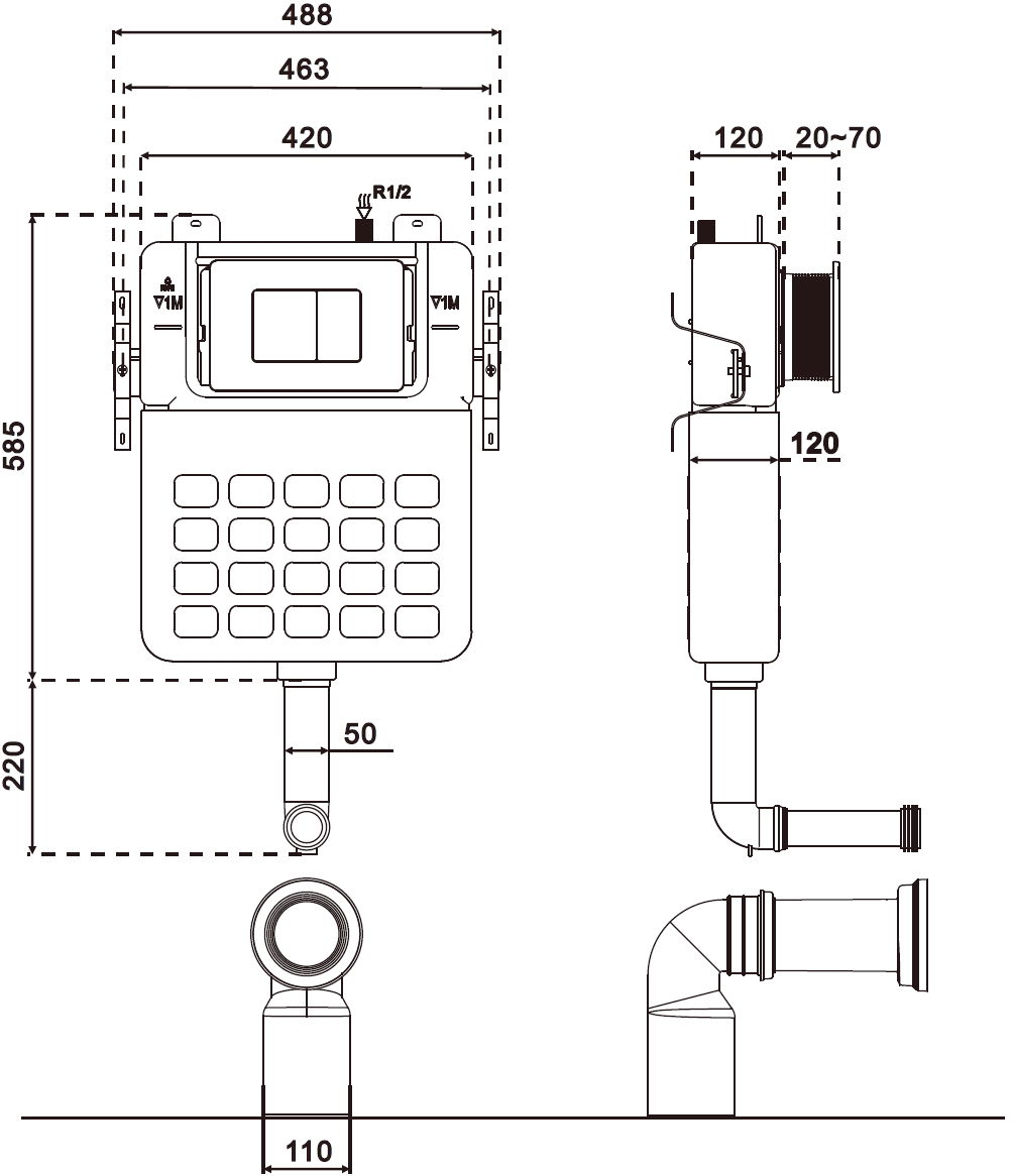 Tuotteessa on säädettävä poistoputki, joka mahdollistaa asennussyvyyden pienentämisen. Tämä ominaisuus antaa mahdollisuuden mukauttaa tuote helposti eri kylpyhuoneessa käytettävissä oleviin poistorei’isiin, mikä takaa tarkan asennuksen.