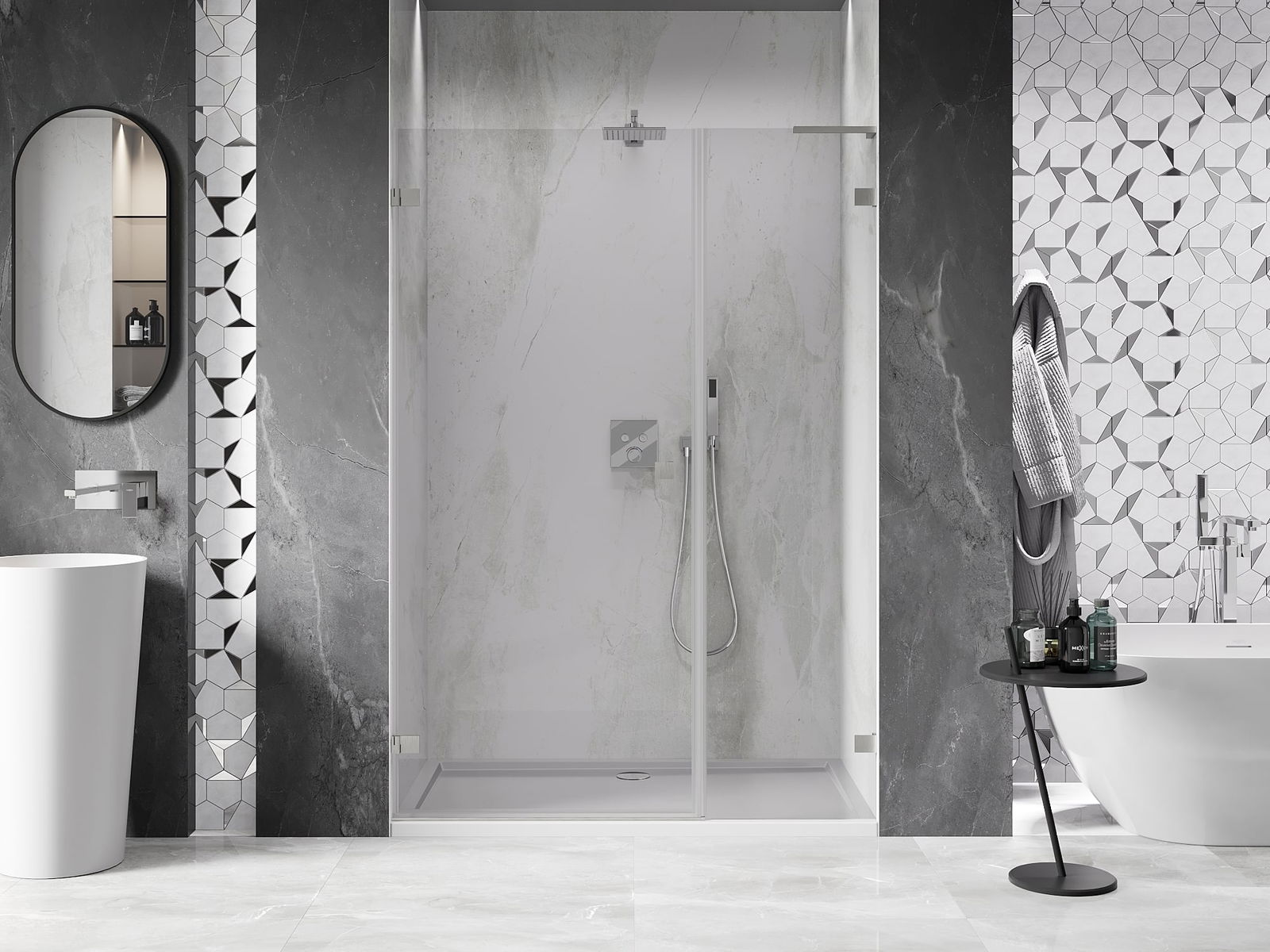 Tuotteen voi tarpeen mukaan asentaa sekä suihkualustalle että suoraan lattialle. Yleismaailmallinen asennustapa mahdollistaa tuotteen mukauttamisen erilaisten kylpyhuoneiden ja tilakonfiguraatioiden mukaan.