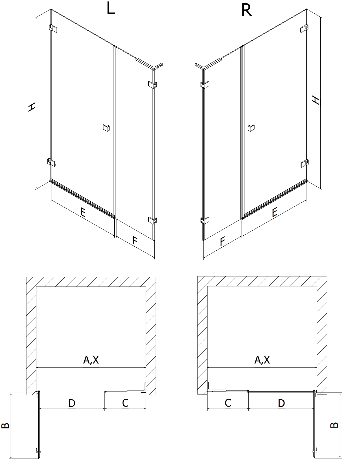 Lasin paksuus: ovet 6 mm, seinä 8 mm