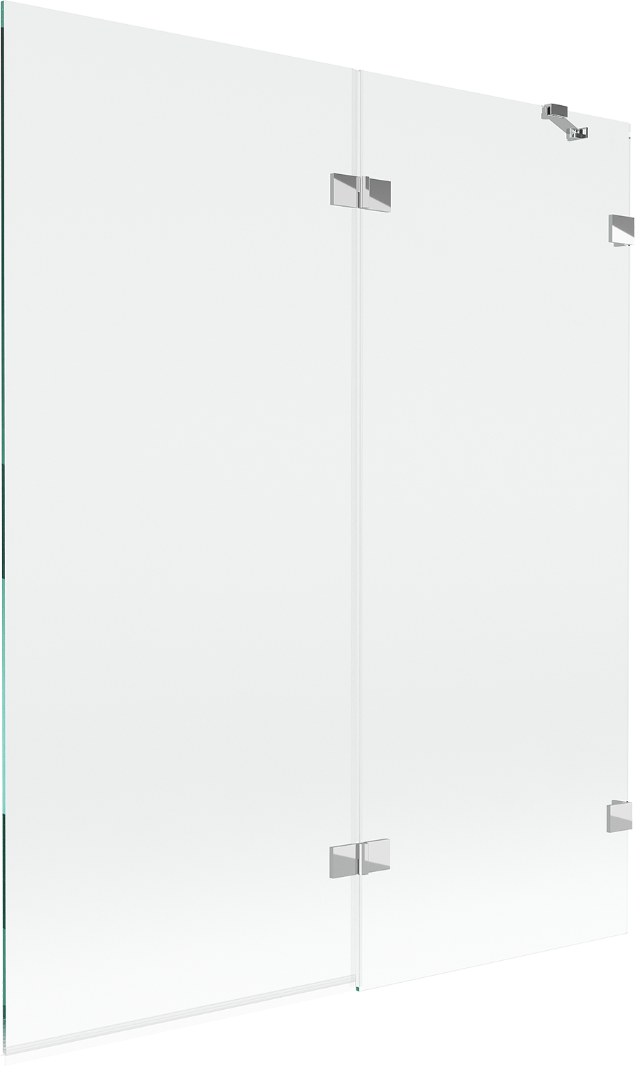 Kahdesta siivestä valmistettu suihkuseinä, joka voidaan taittaa kokoon. Tämä ratkaisu säästää enemmän tilaa kylpyhuoneessa ja mahdollistaa muun tilan vapaan käytön, kun emme käytä suihkutilaa.