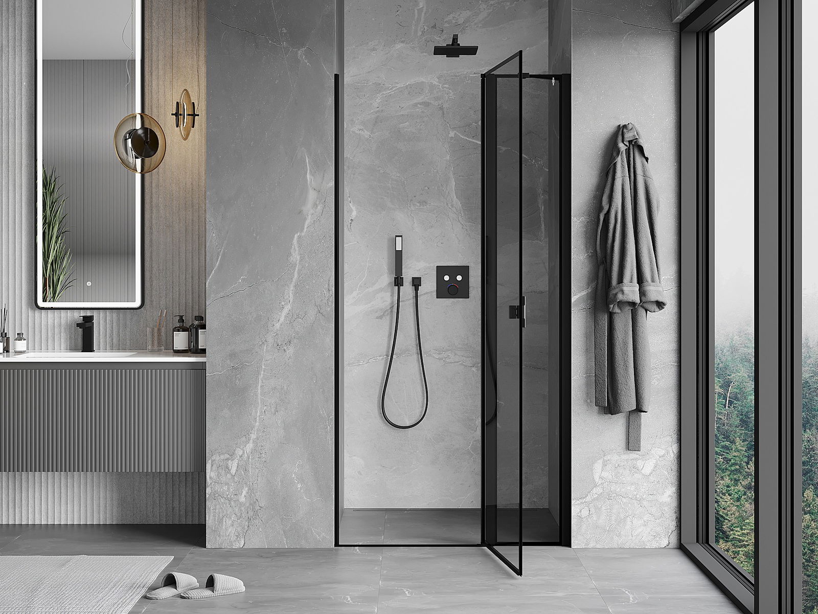 Mexen Mist oikeanpuoleinen 105 cm taittuva suihkuovi, musta kehys, musta - 8A4-105-000-70-70-P